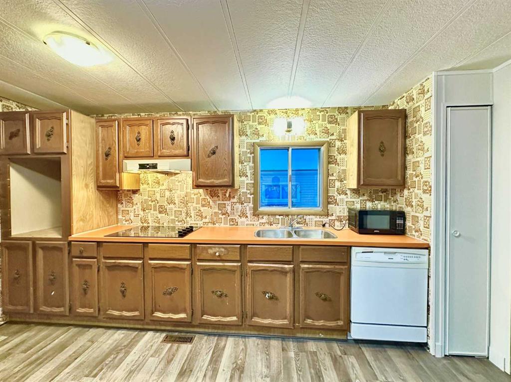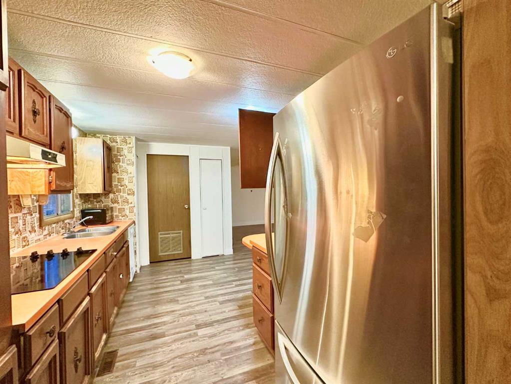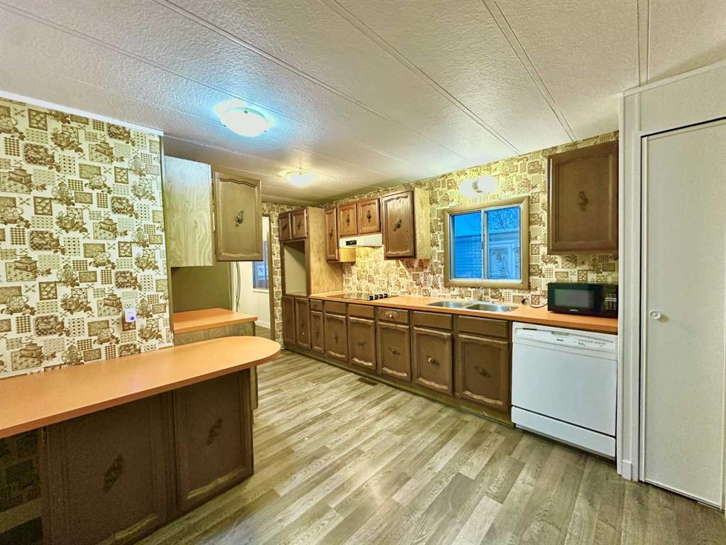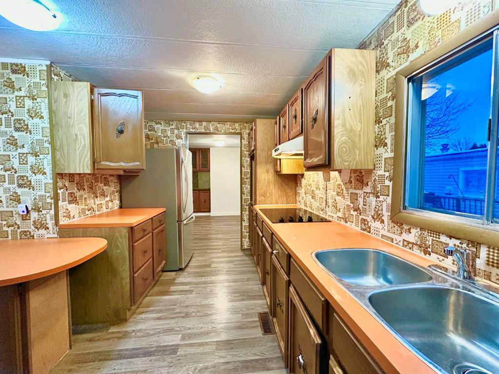Opportunity knocks at Calgary Village Park in the Red Carpet community of Calgary!Pride of ownership is very evident in this home. 1975 Safeway Double Wide on a huge corner lot. Comes with a Living room and a Family room,. Absolutely beautiful private yard LOCATED in the Red carpet Calgary Village Mobile Home Park.Home has been very well maintained. This home is move in ready. Roof Singles and Hot water tank replaced .3 Large bedrooms, 4 pc main bath. Large Master bedroom with a 4 pc ensuite bathroom, ensuite includes a soaker tub. walk in closet. Kitchen comes with entique style and colour Countertop range, Fridge, Dishwasher, Washer and Dryer.Good sized Dining Room with built in China Cabinet, Large Family Room, plus a good size Living Room, Laundry Room off Kitchen. Laminate and LVP flooring. Very Good size yard of the corner lot. Front Drive in for parking. This home and lot has Huge potential to increase the value of property with updates. Close to the Park facilities. This mobile home is situated in the Red carpet Calgary Village Mobile Home Park.
