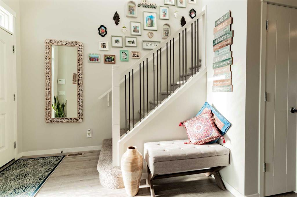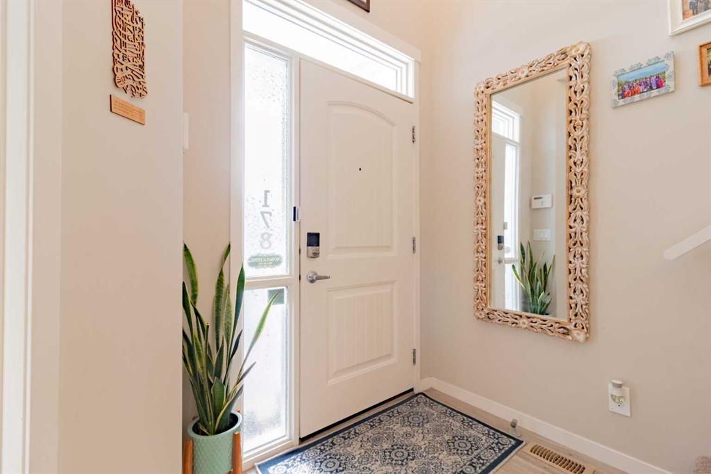 *Open House Sunday, January 4th, 2026 12 – 3 PM & Sunday, January 10th & 11th, 2026 12 – 3 PM** Wow! Unbeatable value in the new Calgary North desirable community of Livingston! Built in 2016 this bright naturally lit south facing former Morrison Homes Show Home ticks all the boxes! 3 Large bedrooms & 2 full washrooms upstairs, a 4th Bedroom & open concept living area with a powder room on the main floor gives you enough room to not only to enjoy but to grow in as well! From modern stainless steel Energy Efficient® appliances & fixtures all through out the house has been thoughtfully laid out & planned for. As you walk through the front doors you will find ample space to take a moment to take your coats & shoes off & place them in the closet to the left. On your right you will find an additional bedroom, currently being used as a library. Walk past the stairs down the hallway to your large open concept kitchen finished with modern stainless-steel appliances, Breakfast Island & own dedicated pantry! The stove already has a gas line pre-installed as well! Here you will also find your dining area with a beautiful modern chandelier & a cozy family room with its own gas fireplace finished with stone. You can cook dinner while the kids watch some TV or finish their home work! Further ahead you will have access to your backyard with a large deck, concrete pad for your BBQ & concrete pathway to your oversized (22’ x 24’) double detached garage. Upstairs you have your large master bed which comes with its own walk-in closet & primary 3-piece ensuite! With views of the lake in the back this room is a perfect retreat from your hectic day! There are two additional large size rooms, both with their own closets & a second 4-piece bathroom upstairs as well. All fittings are Energy Star® & have a sleek modern finish to make them standout! The basement is currently undeveloped & used for recreation. The furnace is high efficiency & there is even a Heat Recovery Ventilator to recover heat on the cold nights & to keep the house cool during the summer there is even central air conditioning! This space is waiting your touch to be developed further if required. The location of this property is priceless, with it being within walking distance of the Livingston Community Center where you will find skate parks, splash pools, tennis courts walking paths, kid’s playgrounds, community hall, theater, private schools & so much more! Upgrades are endless – 9 Ft Ceilings on the main floor and basement, Granite counter tops, oversize kitchen sink, Sprinkler system through out the whole house, oversize fridge, built in closet shelving & much more! Roof replaced with Class 4 Asphalt Shingles October 2025 & Siding replaced November 2024. This home needs nothing & is perfect for first time buyers or investors alike! Don’t miss the opportunity to view this gem & book your showing today!