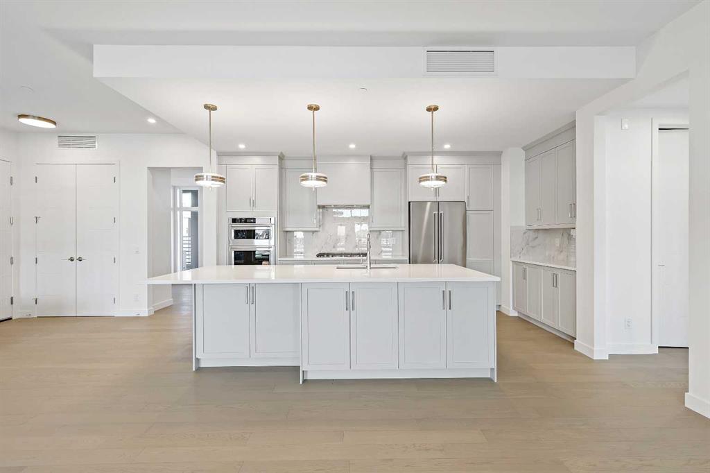 The Streams of Lake Mahogany present an elevated single-level lifestyle in our stunning Reflection Estate homes situated on the park Side on Mahogany Lake. Selected carefully from the best-selling, renowned Westman Village Community, you will discover THE CASCADE, a home crafted for the most discerning buyer, offering a curated space to enjoy and appreciate the hand-selected luxury of a resort-style lifestyle while providing a maintenance-free opportunity to lock and leave. Step into an expansive 1700+ builders sq ft stunning home overlooking a gorgeous greenspace adjacent to Mahogany Lake featuring a thoughtfully designed open floor plan inviting an abundance of natural daylight with soaring 10-foot ceilings and oversized windows. The centralized living area, ideal for entertaining, offers a Built-in KitchenAid sleek stainless steel package with French Door Refrigerator and internal ice maker and water dispenser, a 36\" gas cooktop, a dishwasher with a stainless steel interior, and a 30-inch wall oven with microwave; all nicely complemented by an Elevated DRIZZLE Color Palette. All feature stunning Quartz countertops. You will enjoy two beautiful bedrooms, a generous central living area, with the Primary Suite featuring a spacious 5-piece oasis-like ensuite with dual vanities, a large soaker tub, a stand-alone shower, and a generous walk-in closet. The Primary Suite and main living area step out to a 39 ft x 15 ft terrace with a lovely view of the greenspace. Yours to enjoy and soak in every single day. To complete the package, you have a sizeable office area adjacent to the spacious laundry room, and a double-attached heated garage with a full-width driveway. Custom additions to this home include under-cabinet lighting, an upgraded Moen plumbing fixture package, air conditioning, a convenient laundry room with a folding table, a stunning electric fireplace, and an expansive covered terrace with access from the Living Room, Dining Room, and owner\'s suite. Jayman\'s standard inclusions feature their trademark Core Performance, which includes Solar Panels, Built Green Canada Standard with an Energuide rating, UVC Ultraviolet light air purification system, high-efficiency heat pump for air conditioning, forced air fan coil hydronic heating system, active heat recovery ventilator, Navien-brand tankless hot water heater, triple pane windows and smart home technology solutions. Enjoy Calgary’s largest lake, with 21 more acres of beach area than any other community.