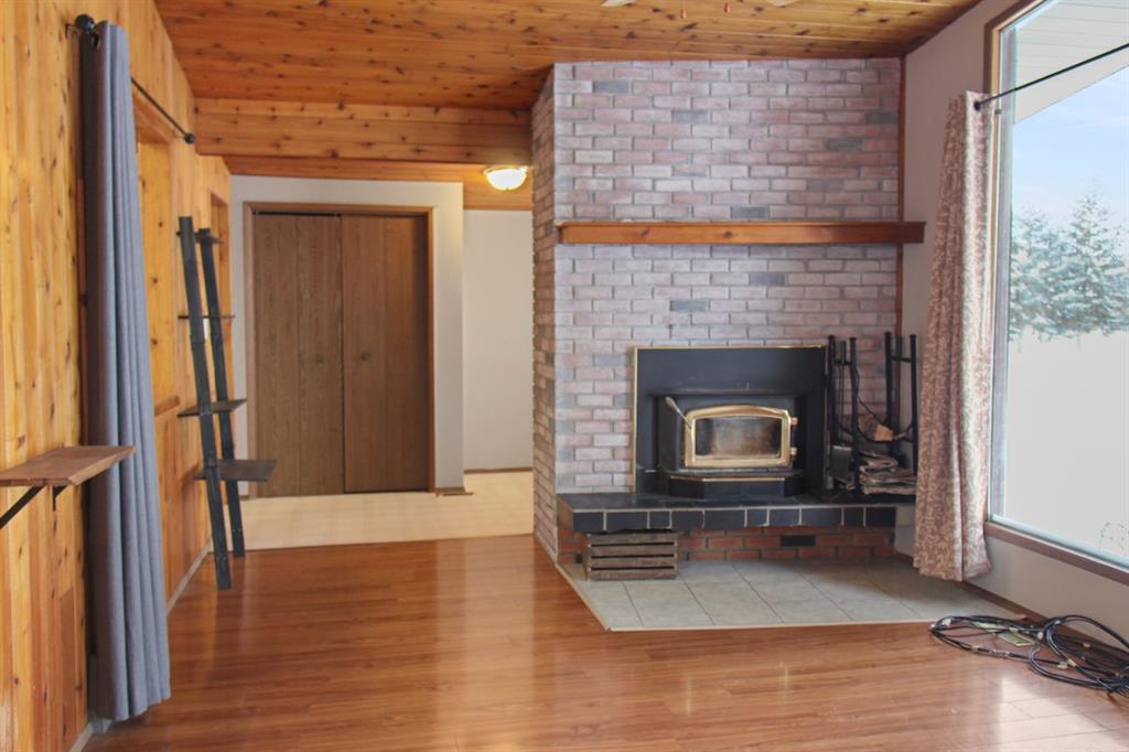 This well-maintained and character-filled home offers 4+1 potential bedrooms and 2.5 bathrooms, with inviting spaces designed for both everyday living and entertaining. Step into the vaulted living room, where large windows facing north flood the space with ample natural light, while exposed wood, striking wooden beams, and a crackling wood-burning fireplace create a warm and cozy atmosphere—perfect for Alberta winters. The living room flows seamlessly into the dining area, conveniently located just off the kitchen. The spacious kitchen features ample cabinetry, exposed wood beams, and a cut-out window to the living room—making serving and hosting effortless. From here, enjoy views of the fully enclosed 3-season sunroom, a versatile space ideal for relaxing, housing a hot tub, or staying sheltered while bringing groceries in from the garage. A gas fireplace keeps this space comfortable and toasty during cooler months. The main floor offers three generously sized bedrooms, including a primary bedroom with its own 2-piece ensuite, along with a 4-piece bathroom featuring a soaker tub. Downstairs, the large recreation room is perfect for gatherings and includes a pool table and custom pool table light, both staying with the property. The basement also features a 3-piece bathroom, laundry room, furnace room, and a cold cellar—ideal for storing canned goods or preserves. Outside, enjoy a good-sized, fully fenced backyard, perfect for entertaining and keeping pets safe. An attached single-car garage provides direct access into the sunroom for added convenience year-round. Quick possession available, making this a fantastic opportunity to move in and enjoy everything this warm and welcoming Forestburg home has to offer.