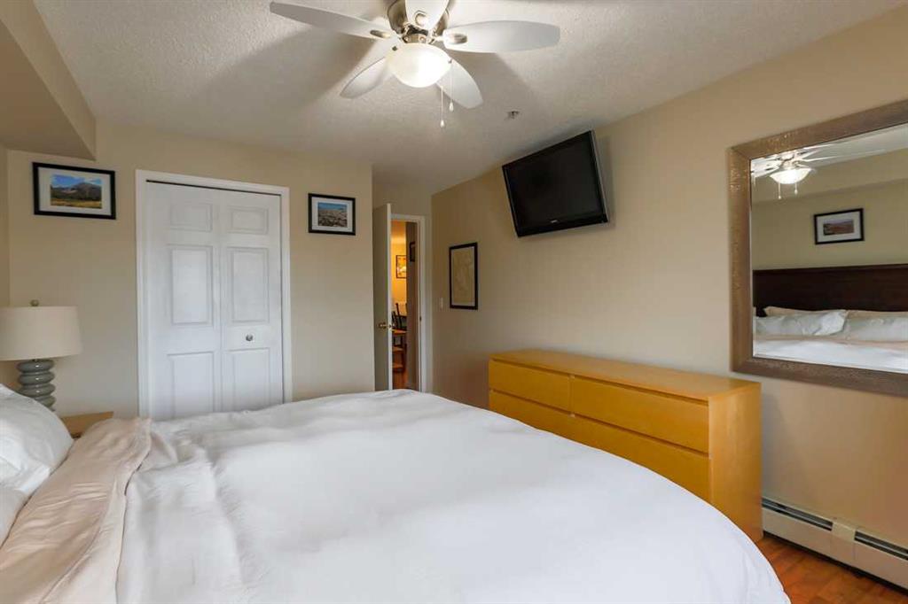 Great location and the largest floor plan in the complex. This 2 bedroom 2 full bathroom unit on the 2nd floor is stunning. Condo fees include ALL UTILITIES. This 1,050 sq ft open concept unit feels very spacious and features a massive west facing patio, suitable for a BBQ, garden beds, or hosting. The large kitchen has great storage, counter space and brand new flooring (renovated Nov 2025) and premium SS appliances. Both bedrooms are a great size. The primary bedroom has a walk through closet leading to a 4pc ensuite bathroom. The 2nd bedroom also has a 4pc bathroom just next to the entrance and 2 large closets for extra storage space. This unit comes with a full laundry room with a brand new washer and dryer (replaced Sep 2025) and a ton of extra storage. Includes a titled underground, heated parking stall. This well-managed and quiet complex has some of the best visitor parking in Airdrie. Located in a very central part of the city, close to schools and shopping with easy access to the highway for those who commute. Book your showing today!