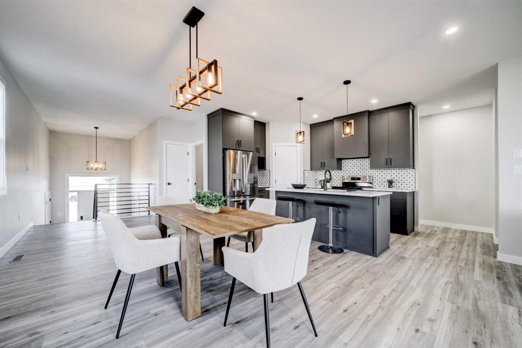 This stunning brand-new, fully developed, walk out bi-level build, is the definition of “turn key GORGEOUS” in a close, right beside a park! Featuring over 2600 square feet of entirely finished space with loads of beautiful upgrades, and designed with real-life functionality in mind. This one offers 5 bedrooms (2 up, 3 down) and 3 bathrooms, with a bright walkout basement that feels like a second main floor. The upper level is warm and stylish, anchored by a beautiful show stopping 72 inch fireplace in the living room, and a covered deck right there for BBQing or just taking in some fresh air, even in the rain or snow. The upgrades in this house include but are not limited to, a kitchen finished with granite countertops and full-height cabinetry that runs right to the ceiling—clean, modern, and timeless. A big central island in this open concept main living space. Energy star appliance package in this energy star rated house, that includes washer, dryer and a gas stove. This one also features main floor laundry. The primary suite located on the main floor is a standout with a large walk-in closet and stunning private ensuite including a gorgeous walk in custom built shower, dual vanity in granite with loads of counter space, and a separate water closet. The additional bedrooms are generously sized throughout, giving you flexibility for kids, guests, office space, or all of the above. Downstairs is where this home really surprises: 9’ ceilings, oversized windows, huge family room, and a wet bar for entertaining, secondary laundry for convenience, and its a walkout! Add instant hot water on demand, and a front attached double garage, plumbed for heat that features a huge upper open space for a mezzanine or a lift- and you’ve got a home that hits hard on value at its list price. If you’ve been waiting for a move-in-ready new build that checks every box, in a close, next to a park, for under $600K- this is the one. Call your agent today and check it out before you miss it!