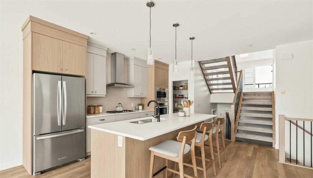 Nestled in the beautiful community of Pine Creek, this brand new four-level split, The Hudson, built by Brookfield Residential, features nearly 2,200 ft2 of developed living space + an undeveloped basement that awaits your imagination and design touches. Featuring 2 living spaces, a home office/flex space, 3 bedrooms, 2.5 bathrooms and plenty of living space, this beautiful family home provides the nostalgia of a four-level-split with the openness you desire in a modern home. Situated on a sunny lot with an ideal south-facing backyard, this home is beautiful both inside and out, giving you plenty of natural light all year long and optimal sunshine in the backyard throughout the summer. The bright and open main level features a gourmet kitchen complete with built-in chimney hood fan, built-in wall oven & microwave, and a gas cooktop. The kitchen is complete with a large walk-in pantry, providing ample storage. The central kitchen overlooks the living and dining areas - making it the perfect entertainment space. The main level is complete with a large flex room with doors, ideal for a home office space, and lastly a large mud room and 2 pc powder room round out the main level. Up a half set of stairs is the expansive bonus room with vaulted ceilings and access to the private balcony off the front of the home. With the main living area just a few steps down, the open concept allows for separation without compromising the open feel and making it feel closed off. Up another half set of stairs, you\'ll find the primary bedroom complete with a walk-in closet and 5pc ensuite bathroom including a soaker tub, walk-in shower, private water closet and dual sinks. The upper level is complete with two additional bedrooms, a convenient 5 pc main bathroom with dual sinks and a full laundry room. Situated on an incredible lot and featuring beautiful design throughout, this brand new home includes full builder warranty as well as 10 year Alberta New Home Warranty with countless amenities nearby!