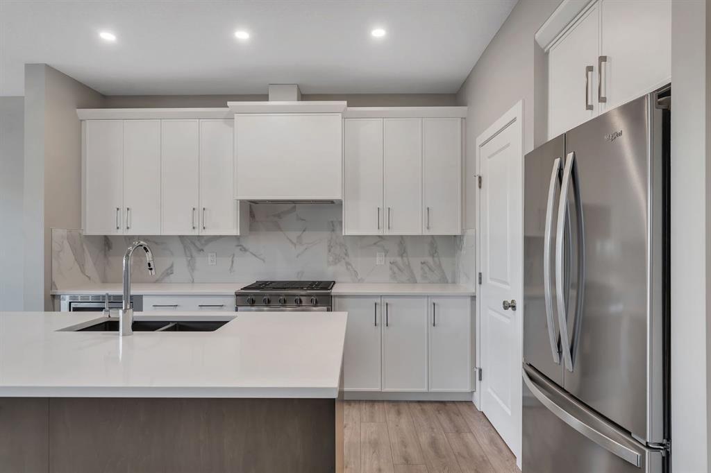 The main floor boasts an upgraded gourmet kitchen with quartz countertops throughout, premium stainless steel appliances including a gas stove, French door refrigerator, built-in microwave, and dishwasher. You’ll also love the extended dining area and decent sized pantry for extra convenience. A full bedroom and 3-pc bath on the main level makes it ideal for guests or extended family. The open-concept living and dining space flows seamlessly to the large back deck—a rare bonus—perfect for summer BBQs and gatherings.