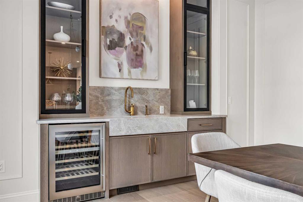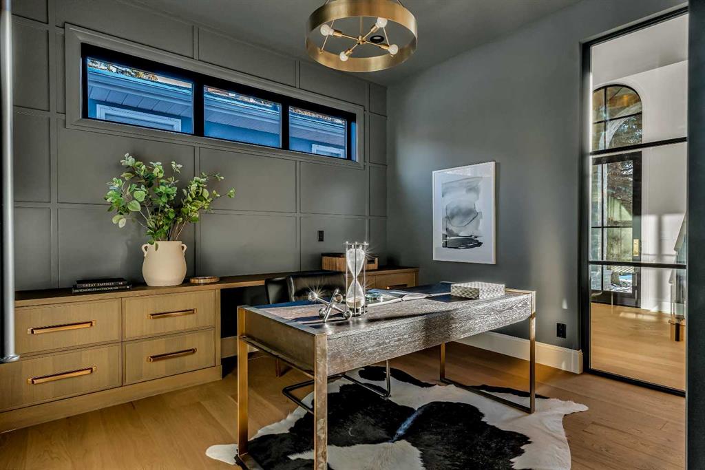 **Open House: Sat Jan 10th & Sun Jan 11th Noon to 2:00 pm each day** Located in a quiet cul-de-sac, this architecturally refined residence NEWLY BUILT by CNJ DEVELOPMENTS offers 4000 SQ FT ABOVE GRADE plus 1897 SQ FT OF FULLY DEVELOPED LOWER LIVING, backing onto green space with DOWNTOWN VIEWS. The main floor is anchored by an ENCLOSED OFFICE with STEEL FRAME GLASS WALLS and CUSTOM BUILT-INS, creating a private, light-filled workspace. A CHEF’S KITCHEN pairs WOLF AND SUB ZERO APPLIANCES with SOLID WOOD DOVETAIL CABINETRY, including a 6-BURNER GAS RANGE, WALL OVEN AND MICROWAVE, and oversized PANELLED FRIDGE AND FREEZER. A BUTLER’S PANTRY with SECOND DISHWASHER adds hosting efficiency, while a DEDICATED DINING ROOM with WET BAR AND SERVING STATION elevates everyday entertaining. FRENCH DOORS connect to the rear DECK AND YARD for indoor-outdoor flow. The living room impresses with VAULTED CEILINGS, EXPOSED WOOD BEAM and a FULL STONE ENCASED GAS FIREPLACE, designed for a future PICTURE FRAME TV. Daily function is supported by a spacious mudroom with OPEN LOCKERS and generous storage, plus a tucked-away powder room finished with DESIGNER WALLPAPER and a FLOATING WATERFALL-EDGE VANITY. The upper level features 9’ CEILINGS and a PRIMARY RETREAT with INDEPENDENT HEATING CONTROLS, WET BAR, VAULTED CEILING WITH BEAMS, and DOWNTOWN VIEWS. A spa-calibre ensuite includes an OVERSIZED SHOWER and DUAL VANITY WITH MAKEUP DESK, while a separate WALK-IN CLOSET with CENTER ISLAND delivers exceptional organization. Three additional bedrooms each include WALK-IN CLOSETS. One bedroom features a 4-PIECE ENSUITE, while a separate 5-PIECE MAIN BATH with DUAL VANITY serves the remaining rooms. A well-designed laundry room includes extensive storage and a STEAM CLOSET for garment refreshing. The lower level is built for entertaining with 10’ CEILINGS, a WET BAR WITH WINE ROOM, an enclosed GYM with GLASS WALL and INDEPENDENT HEATING CONTROL, a large REC ROOM for games and gathering, and a THEATRE ROOM equally suited for a FUTURE GOLF SIMULATOR. A 5-PIECE BATHROOM includes SPACE AND ROUGH-IN FOR A SAUNA, alongside a 5th BEDROOM ideal for guests. Outdoor living is elevated with a large DECK featuring a GAS FIREPLACE, and BUILT-IN BBQ. HIGH-END UPGRADES include a COMMERCIAL-GRADE BOILER WITH MULTI-ZONE RADIANT HEAT, TWO A/C UNITS, TRIPLE PANE WINDOWS, SMART THERMOSTATS, 200 AMP PANEL, OPEN WEB JOISTS for flat stable floors, WIRING FOR FUTURE AUTOMATION, and VACUFLO ROUGH-IN. The OVERSIZED DOUBLE ATTACHED GARAGE is INSULATED with EPOXY FLOORING, HYDRONIC IN-FLOOR HEAT, and ROUGH-IN FOR EV CHARGING, plus yard space for RV parking. Rideau Park is one of Calgary’s most discreet inner-city enclaves, valued for privacy, mature trees, limited through-traffic, and effortless access to downtown. Architectural distinction, thoughtful design, and quiet luxury define this gorgeous home!