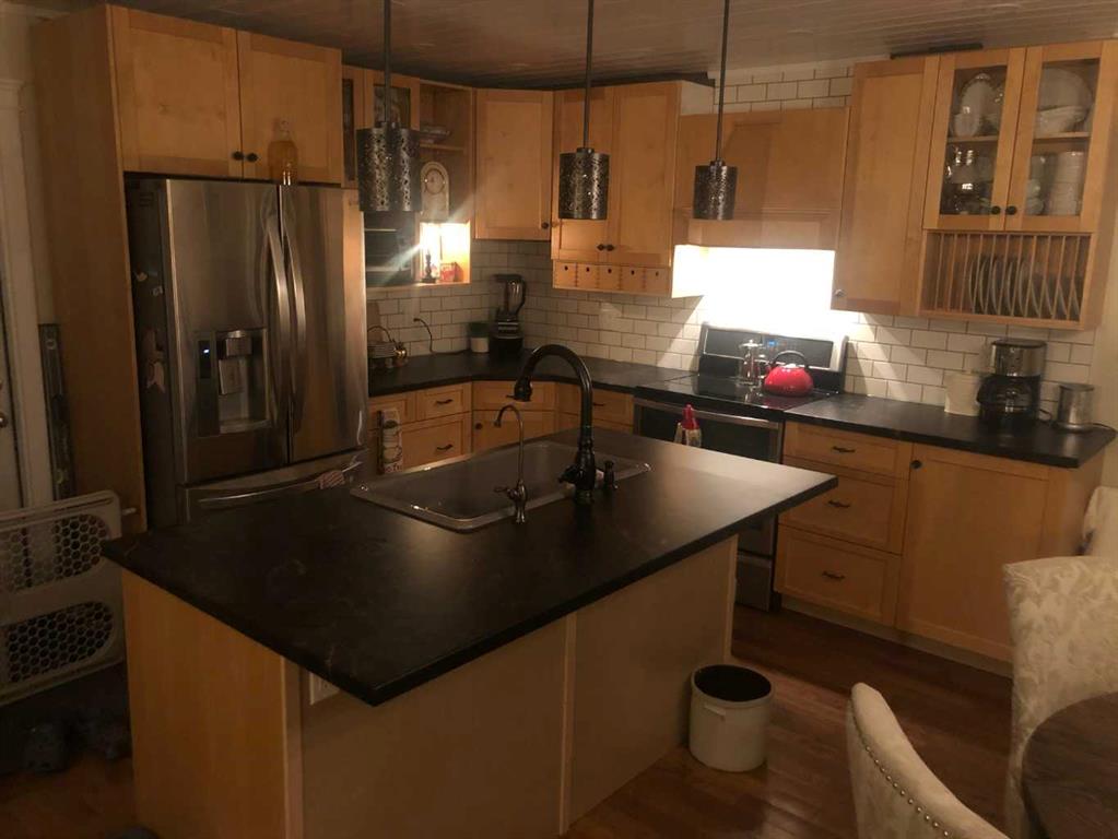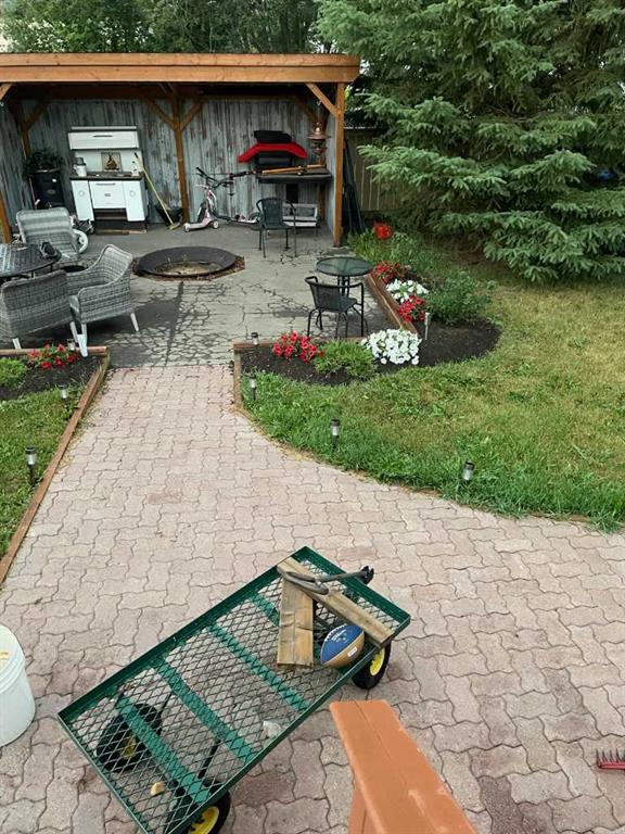 Very nice starter home located in Hythe. The home has been updated throughout the past 10 years. The main floor kitchen has maple cabinets, a pantry and an island. The main floor also includes a dining room, a sunken living room, 2 bedrooms and a large bathroom. The downstairs consists of a bedroom, an office (or 2nd bedroom), a 3-piece bathroom with a shower and a general recreation area with a pellet stove. Bathrooms have been redone and have in-floor heating. The windows (except 1) and all the doors have been replaced. The shingles and ease troughs are all new in 2024. The appliances include a fridge, stove (2 years old), new dishwasher and older washer and dryer. The home has a small deck off the front entrance and a larger deck in the back. The yard is fenced and has a brick walkway, a fire pit, a lean-to, and a few trees. There are also 3 sheds, a barn-style garden shed and 14 x 20 and a 12 x 8 dry storage shed. The owner has included all the sheds in the listing price. If you do not want the 2 storage sheds, the owner will keep them and remove them in the spring. Adjust your offer accordingly.