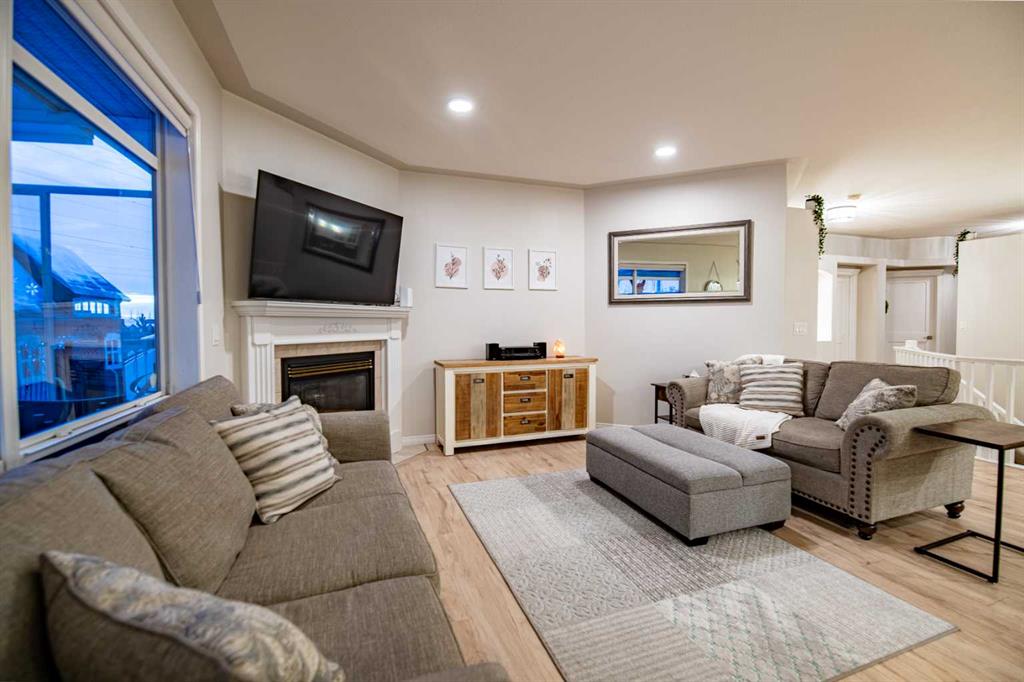 Welcome to 114 Alberts Close ~ A beautiful fully developed bungalow renovated by Sorento Homes on a huge pie lot! Boasting just under 1500 Sq Ft this immaculate property offers open concept living spaces, main floor laundry, a gorgeous kitchen and of course access to the amazing fully fenced and landscaped South facing yard. The main level features two bedrooms one of which is currently used as an office (lacks a closet) as well as the large primary suite completed by a walk-in closet and a 4pc ensuite including a separate jet tub. The showstopper of a kitchen showcases tons of cabinet space, granite and quartz counters, a corner pantry, upgraded appliances and an oversized island which overlooks the living room perfect for entertaining guests. Off of the oversized and heated garage is where you will find the laundry room with upgraded appliances. The fully developed basement with in-floor heat offers a huge recreation room as well as cozy media space accompanied by built-ins as well as a wet bar. Two oversized bedrooms and a 4pc bathroom complete the lower level. The amazing backyard offers endless options with tons of room for an additional garage if that is on your wish-list ~ currently you will find an oversized covered deck with a gas line, lower patio with a hot tub, kids play space and RV parking with a swing gate. The yard is fully fenced and landscaped with underground sprinklers front & back. Additional notable features include: Central A/C, new blinds on the main floor, vinyl plank throughout the main floor, water softener, paved back alley and so much more. Pride of ownership is evident as this property shows like a show home!