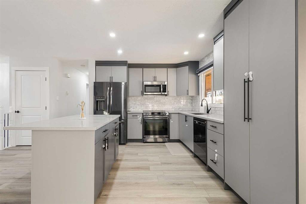 Inside, you’ll find wide-plank vinyl flooring, an open-concept layout, pot lighting throughout, and fresh paint from top to bottom, complemented by all-new doors and casings. The upgraded kitchen features matte cabinetry, granite countertops, a porcelain marble backsplash, and black stainless steel appliances, creating a stylish and practical space for everyday living and entertaining.
