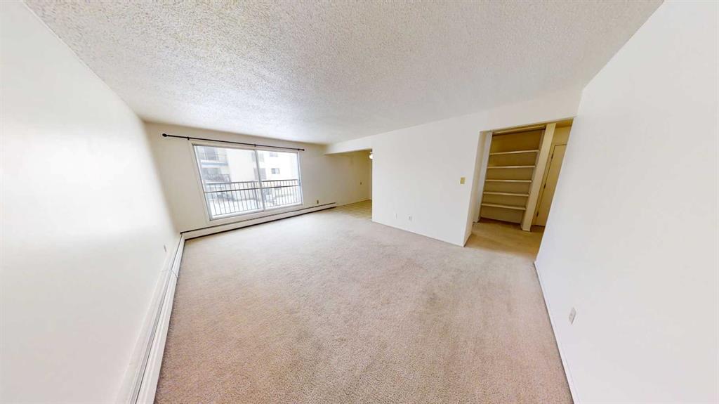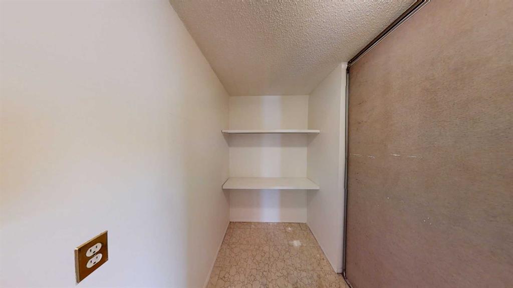 Second floor unit features entry closet, 2 shelving areas and a large living room.
