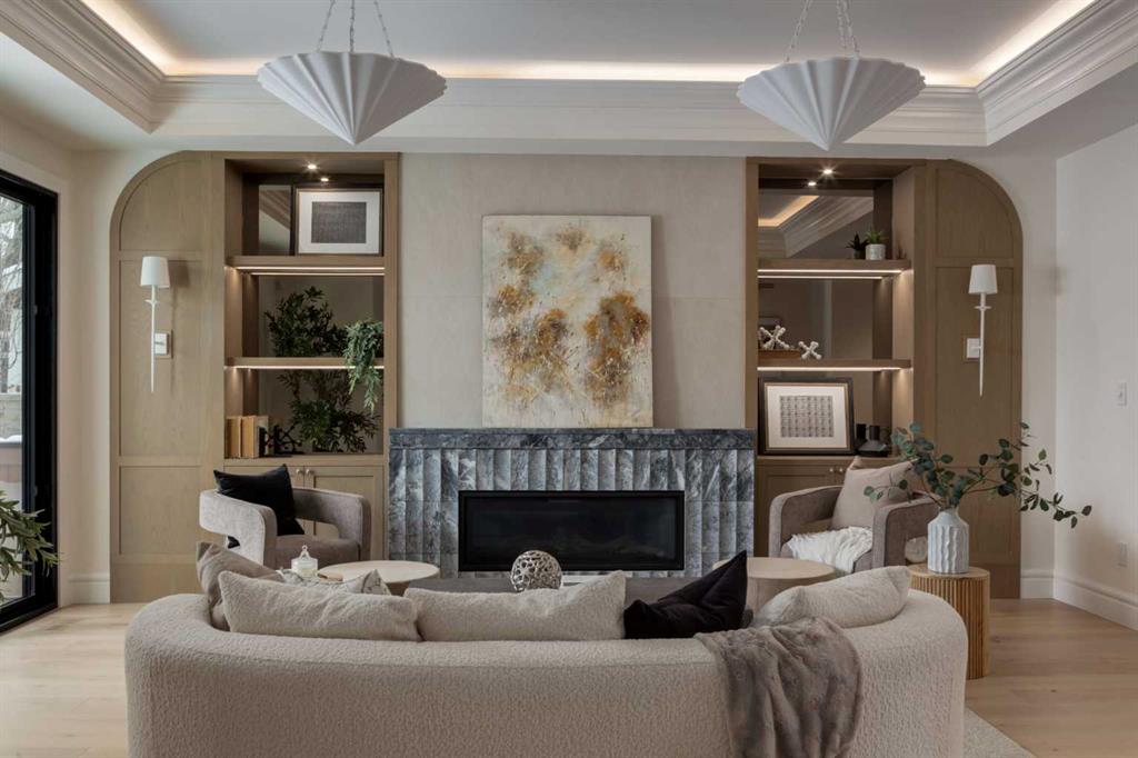 OPEN HOUSE – Jan 10 & Jan 11, 2 :30- 4:30 PM!! Welcome to 412 40 Avenue SW, a rare opportunity to own a brand new home by Platinum Build Homes in prestigious East Elbow Park. With nearly 4,450 sq. ft. of thoughtfully designed living space, this timeless home blends classic architecture with luxurious modern details. Situated on a mature, tree-lined street with unobstructed front views and steps from the Elbow River, the setting offers both tranquility and a true inner-city lifestyle. A beautiful stone exterior, heated driveway, and grand front steps create exceptional curb appeal. Inside, a soaring entryway welcomes you to a bright and open main floor featuring a private office with custom millwork, and an elegant kitchen and family area with built-in cabinetry and top-of-the-line Wolf and Miele appliances. Upstairs, the primary suite features a sunny south-facing balcony, a spa-like ensuite, and a walk-in closet. Two additional bedrooms each have their own ensuite and walk-in closet, along with a laundry room and a bonus room for extra flexibility. The lower level is built for entertaining and relaxation, featuring a stunning bar with a glass wine room, radiant-heated epoxy floors, a large recreation room, home gym, and two additional bedrooms with a full bath. With so many thoughtful features and exquisite details throughout, this home is truly best experienced in person.. Book your private showing today.