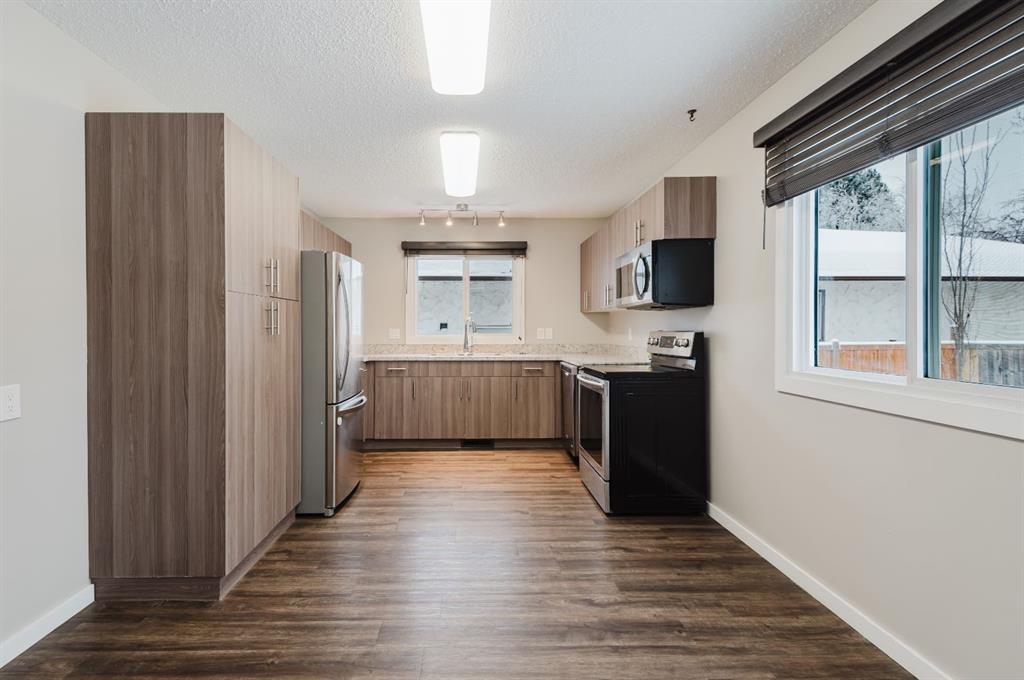 Welcome to this beautifully updated four-level split, ideally located in the highly desirable South Patterson neighbourhood. This inviting, family-friendly home offers a well-designed layout with space for everyone. Upon entry, you’re greeted by a bright and open living room flowing seamlessly into a modern kitchen—perfect for everyday living and effortless entertaining. The upper level features three generously sized bedrooms, all equipped with blackout blinds, along with a full bathroom. The lower level offers a warm and welcoming retreat, complete with a wood-burning fireplace, an additional full bathroom and laundry. The finished lowest level adds even more versatility with additional living space, perfectly suited for a playroom, home gym, or home office. Outside, enjoy a large, open backyard with no rear neighbours, fully fenced for privacy. Recent updates include newer windows, hot water tank, fridge, and microwave. Located on a quiet street close to schools, parks, walking trails, and shopping, this home truly checks all the boxes for comfortable family living in one of Grande Prairie’s most sought-after communities.