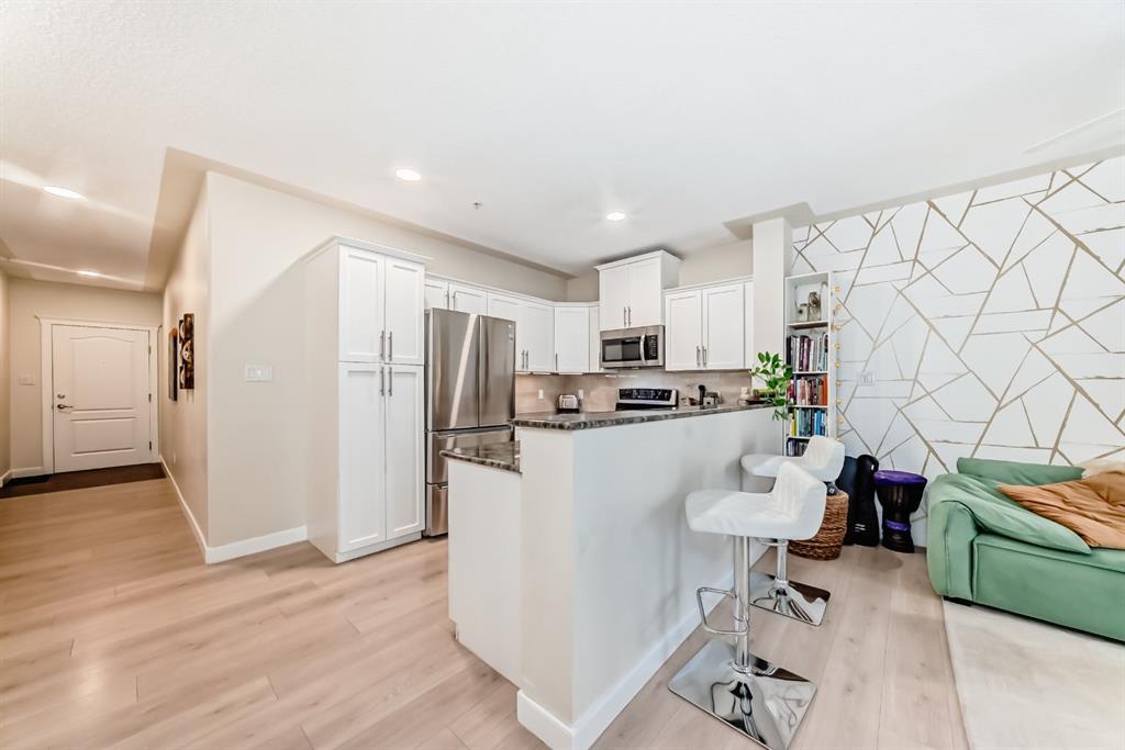 An executive tree house in the city - like living in Banff! A rare find - this spacious 865 sq ft one bedroom plus den in a concrete building is perfect for the outdoor enthusiast who loves to hike through the tranquil Griffith Woods (93 hectare nature park) along the Elbow River. Lovely updates - recessed lighting, white kitchen, granite countertops, stone fireplace with large mantle, covered balcony with a gas hook up for the BBQ. The Wedgewoods Fitness Centre is right across the hall. Private. Close to the mountains, amenities and 15 minutes to downtown. Well run complex.