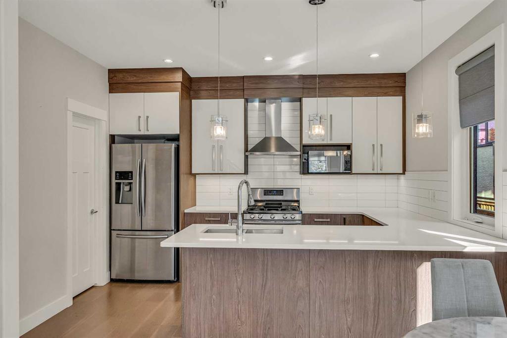 ***OPEN HOUSE DATES: Saturday, Jan 10th and Sunday, Jan 11th 12:00pm - 4:00pm each day*** FRONT UNIT with WEST EXPOSURE, CENTRAL AC, and a thoughtful layout designed for comfort and flexibility. NATURAL LIGHT fills the main level where a front living room overlooks the street and a GAS FIREPLACE with floor-to-ceiling tile adds a relaxing focal point. Wide-plank HARDWOOD floors extend into a central dining area with a table and chairs included. The modern kitchen is appointed with QUARTZ COUNTERTOPS, a peninsula island, GAS STOVE, FULL HEIGHT CABINETS, CORNER PANTRY, and stainless steel appliances. A tucked-away powder room completes the main floor. Upstairs, a SKYLIGHT brightens the stairwell and illuminates the upper level. The primary bedroom is spacious with a COFFERED CEILING, WALK-IN CLOSET with BUILT-IN ORGANIZERS, and a LUXURIOUS ENSUITE featuring a DUAL VANITY and STAND-UP SHOWER. A second bedroom includes its own 4PC ENSUITE with skylight, creating a DUAL PRIMARY FLOORPLAN ideal for guests, roommates, or family members. The FINISHED BASEMENT expands the living space with a rec room perfect for movie or game nights, a THIRD BEDROOM that offers flexibility for guests, a teenager’s retreat, or a quiet home office, a 3PC BATH with a sleek stand-up shower for modern convenience, and a thoughtfully placed laundry area with washer/dryer included for everyday practicality. Outside, a PRIVATE FRONT COURTYARD creates ample outdoor space to barbeque and unwind, complemented by low-maintenance landscaping. A SINGLE GARAGE provides secure parking and storage. Situated in the established neighborhood of KILLARNEY/GLENGARRY, this home balances quiet residential streets with urban convenience. Westbrook LRT, Killarney Aquatic Centre, and numerous local parks are nearby along with schools, coffee shops, and restaurants on 17th Avenue. Quick access to downtown and major routes ensures effortless connectivity. This thoughtfully designed residence combines style, comfort, and a walkable location for a lifestyle that feels both connected and at ease.