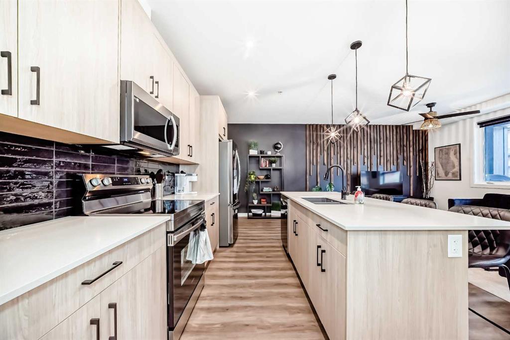 Discover a lifestyle of effortless elegance in this meticulously maintained almost new, 1,014 sq. ft. residence. Offering a functional design, this home features an open-concept layout that caters perfectly to urban professionals, rightsizers, or young families seeking a low-maintenance retreat. The heart of the home is an expansive, light-filled living room (11’11” x 19’8”) that serves as the hub for relaxation or social gatherings. It flows seamlessly into a chef-inspired kitchen, where a generous footprint and a dedicated walk-in pantry ensure every culinary need is met with ease. Pristine-kept, this pet-free home offers an immediate sense of freshness and pride of ownership. The primary suite is a true sanctuary, boasting impressive dimensions (11’6” x 11’11”), a spacious walk-in closet, and a private 4-piece ensuite. Ensuring privacy and versatility, the secondary bedroom is positioned near a second full 4-piece bathroom—an ideal configuration for guests, roommates, or a quiet home office. Forget cramped utility closets; this unit features a large, dedicated in-suite laundry room (7’7” x 5’7”) that provides substantial bonus storage. Extend your living space outdoors onto the massive 130+ sq. ft. private balcony. Stretching over 20 feet long, this impressive terrace is a rare find, offering the perfect canvas for container gardening, morning espresso, or sunset cocktails.