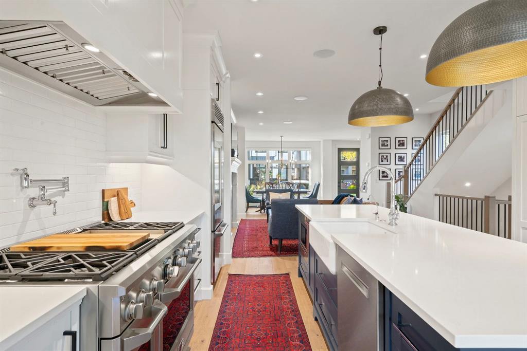 This one is SPECIAL by design. Custom-built by respected Braemyn Homes & designed by Dean Thomas, this rare SW Calgary semi-detached home offers true SINGLE-family living. Intentionally designed WITHOUT a legal suite, allowing the layout, light & finishes to serve the homeowner - not a rental configuration. The result = larger living spaces, better flow & a more cohesive design throughout. Set on a quiet elm tree–lined street, the timeless brownstone exterior features full-size BRICK, concrete lintels & striking Gemstone lighting that creates a beautiful presence at night. Walk up your extra wide concrete walkaway, while you appreciate the beautiful, low maintenance landscaping out front. Inside, light flows East to West across white oak hardwood floors, high ceilings and an open-concept layout ideal for both entertaining and everyday living. Amazing dining space for every day meals or special occasions. Entertain family or enjoy cozy nights at home in front of gas fireplace. The chef’s kitchen showcases Monogram appliances, a 48” gas/electric range with pot filler, oversized quartz island & exceptional storage. Designed at the back of the home, it connects seamlessly to the outdoor living space for year-round enjoyment. The outdoor space truly defines this home. Designed as a private, European-style courtyard, it offers approximately 550 sq ft of premium deck space plus a 300 sq ft stone patio surrounded by mature trees, vines & greenery. A brick gas fireplace anchors the space, while a motorized Suncoast louvered pergola with heater provides sun, warmth & rain protection. With motorized wind screens & thoughtful design, this is a 3 season outdoor living space that delivers privacy, comfort & year-round enjoyment! Custom lighting options & window treatments throughout. Lovely designer 2 piece bath & mud room complete this floor. Head up your HW stairs to second level & find TWO amazing suites - both w/large bedroom areas, beautiful ensuites & closet spaces! One stands out w/heated ensuite floors, dual sinks, stand alone tub & HUGE shower. Laundry w/sink & direct hamper access to walk-in closet! Third level provides flexible space for relaxing, working or entertaining - easily convertible to THIRD bedroom or full-floor primary retreat - plus a LARGE private balcony with city views & future hot tub rough-in. A fully finished basement adds another bedroom, fifth bathroom, flex space, wine room & abundant storage. Additional highlights include a double finished, insulated garage w/epoxy floors, low-maintenance landscaping & a school at the end of the block! Steps to Marda Loop, LRT, Westhills & the revitalized 37th Street corridor w/bike paths to North Glenmore Park & downtown. Get downtown or out of town quickly. A thoughtfully designed lifestyle home - that truly stands apart from others. It\'s impossible to describe this incredible home to its full potential - book your showing today to view it in person! List of upgrades in photo carousel.