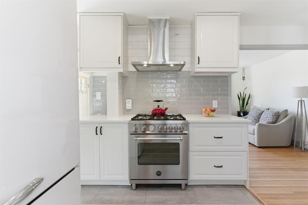 The renovated kitchen is fit for a chef, featuring quartz countertops and a Bertazzoni 5-burner GAS stove. The main floor offers 2 bedrooms and 1 fully UPDATED bathroom.
