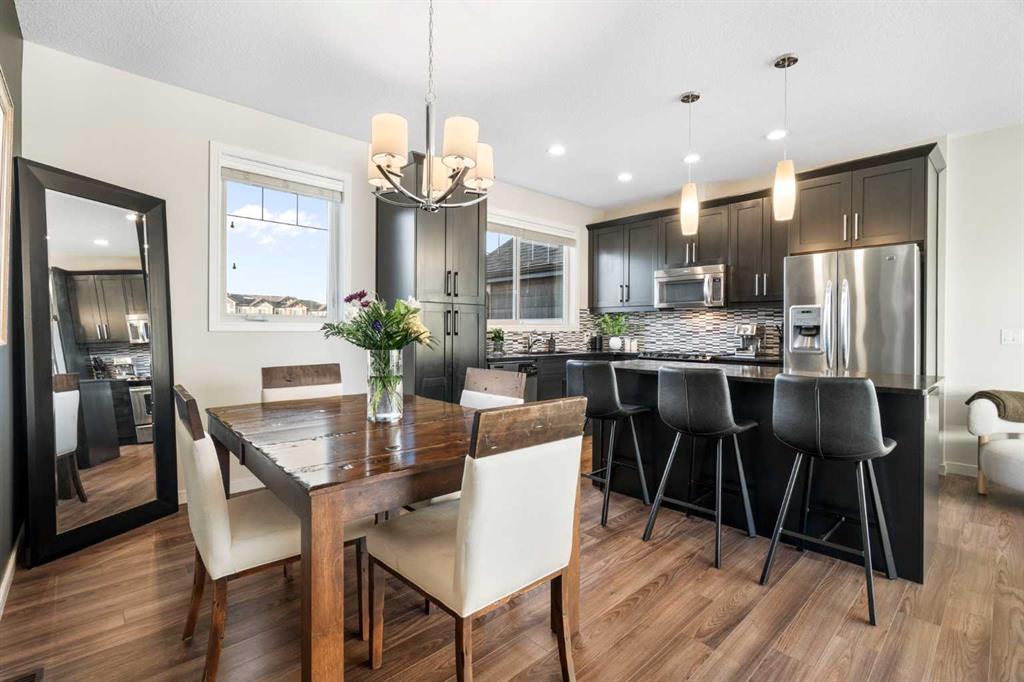 Welcome to this beautifully maintained, move-in-ready townhouse located in the sought-after community of Nolan Hill. Ideally positioned backing south onto a tranquil nature reserve with scenic ravine views, this home offers an exceptional blend of space, comfort, and convenience. With over 1700 sq ft of well-designed living space, the property features a double attached heated garage, air conditioning, three bedrooms, and two and a half baths, making it an ideal choice for today’s modern lifestyle. The inviting front entry opens to a spacious and flexible main-floor family room that easily adapts to your lifestyle. Whether used as a family room, home office, study, playroom, or fitness space, it enjoys sunny south-facing windows and walk-out access to a private patio and green space beyond. Upstairs, the second level impresses with 9-foot ceilings and an open-concept layout ideal for both entertaining and daily living. Wide-plank laminate flooring flows throughout, while the gourmet kitchen shines with stainless steel appliances, generous cabinetry, granite countertops, and a large centre island perfect for meals and gatherings. A roomy dining area connects seamlessly to the bright and airy living room, complete with large windows and a cozy wall-mounted gas fireplace. Step out through the patio door to the sun-soaked south-facing balcony with a gas BBQ line and beautiful ravine views. This level also includes a convenient 2-piece bath and additional storage. The upper level offers 3 well-sized bedrooms, including a comfortable primary retreat with a walk-in closet and private 3-piece ensuite. A 4-piece main bath and upstairs laundry complete this level, making everyday routines effortless. Additional highlights include noise-cancelling exterior walls and a prime location within the complex facing a green space and shared with only three adjoining units, creating a quiet and private setting. The pet-friendly complex allows pets with board approval. A newly announced K-4 school adds even more appeal to the community. Recent exterior updates include brand new shingles throughout, along with partial replacement of siding, eaves, downspouts, and fascia where hail damage was present. Enjoy a superb location within walking distance to the Gates of Nolan Hill shopping plaza, minutes to Sage Hill Crossing and Beacon Hill Shopping Centre, close to area schools, and offering quick access to Shaganappi, Sarcee, and Stoney Trail. Miles of pathways and park space are right outside your door. This is maintenance-free living at its best. Book your private showing today!