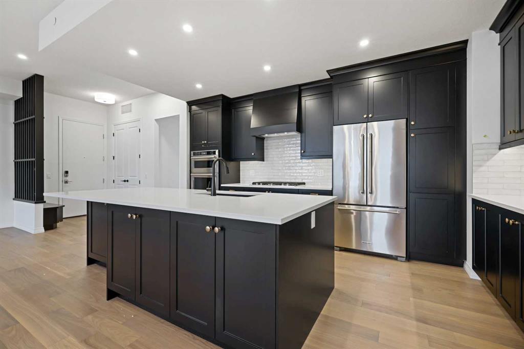 The Streams of Lake Mahogany present an elevated single-level lifestyle in our stunning Reflection Estate homes situated on Mahogany Lake. Selected carefully from the best-selling, renowned Westman Village Community, you will discover THE CASCADE, a home crafted for the most discerning buyer, offering a curated space to enjoy and appreciate the hand-selected luxury of a resort-style lifestyle while providing a maintenance-free opportunity to lock and leave. Step into an expansive 1700+ builders sq ft stunning home overlooking a gorgeous green space adjacent to Mahogany Lake featuring a thoughtfully designed open floor plan inviting an abundance of natural daylight with soaring 10-foot ceilings and oversized windows. The centralized living area, ideal for entertaining, offers a Built-in KitchenAid sleek stainless steel package with French Door Refrigerator and internal ice maker and water dispenser, a 36\" gas cooktop, a dishwasher with a stainless steel interior, and a 30-inch wall oven with microwave; all nicely complemented by an Elevated Charcoal Color Palette. All are highlighted with stunning Quartz countertops. You will enjoy two beautiful bedrooms, a generous central living area, with the Primary Suite featuring a spacious 5-piece oasis-like ensuite with dual vanities, a large soaker tub, a stand-alone shower, and a generous walk-in closet. The Primary Suite and main living area step out to a 39 ft x 15 ft terrace with a lovely view of the greenspace. Yours to enjoy and soak in every single day. To complete the package, you have a sizeable office area adjacent to the spacious laundry room, and a double-attached heated garage with a full-width driveway. Custom additions to this home include under-cabinet lighting, upgraded Moen black plumbing fixture package, air conditioning, a convenient laundry room with a folding table, a stunning electric fireplace and an expansive covered terrace with access from the Living Room, Dining Room and owners\' suite. Jayman\'s standard inclusions feature their trademark Core Performance, which includes Solar Panels, Built Green Canada Standard with an Energuide rating, UVC Ultraviolet light air purification system, high-efficiency heat pump for air conditioning, forced air fan coil hydronic heating system, active heat recovery ventilator, Navien-brand tankless hot water heater, triple pane windows and smart home technology solutions. Enjoy Calgary’s largest lake, with 21 more acres of beach area than any other community.