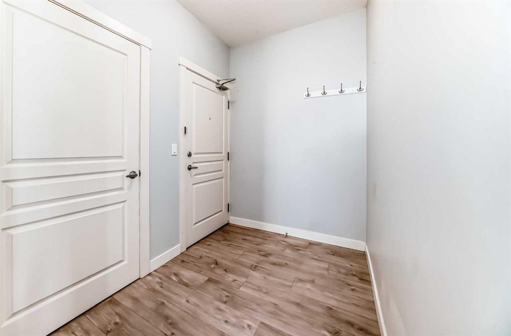 Beautifully laid out top floor, corner, huge 2 bedroom and 2 bathrooms apartment in well maintained Evanston Square. Barely any space wasted on hallways Space enough for a dedicated dining area. Natural light bathed living room looks out to the patio and beyond without obstruction. Good size patio with glass panels and natural gas outlet for barbecue. Ample size primary bedroom comes with a walk-in closet, and a four piece bathroom with shower stall. The second bedroom is just as spacious as the primary bedroom. The kitchen comes with stainless steel appliances and most of them were replaced recently. The quart countertop, and breakfast bar complete the kitchen. The laundry room doubles as a storage room, room enough to store and forget. If this is not enough there is an assigned external storage unit. This home was painted about 3 years ago with bright and lively colour. The floor was levelled and flooring replaced.The size of the titled underground parking stall will provide added incentives to own this home. The width of the stall is 13.5 with a pillar on one side and the wall on the other. It is almost like having your own garage. It is pet friendly too. Two major shopping centres, Creekside and Sagehill Crossings and minutes away. Major retailers like Walmart, T & T superstore, banks and other amenities are within easy reach. You are never far away from anywhere with easy access to Stoney and Shaganappi Trail. Come, visit and make this your place.