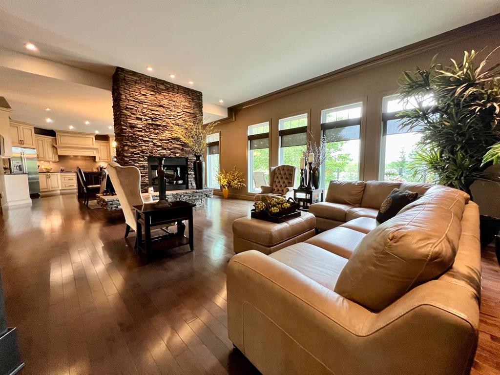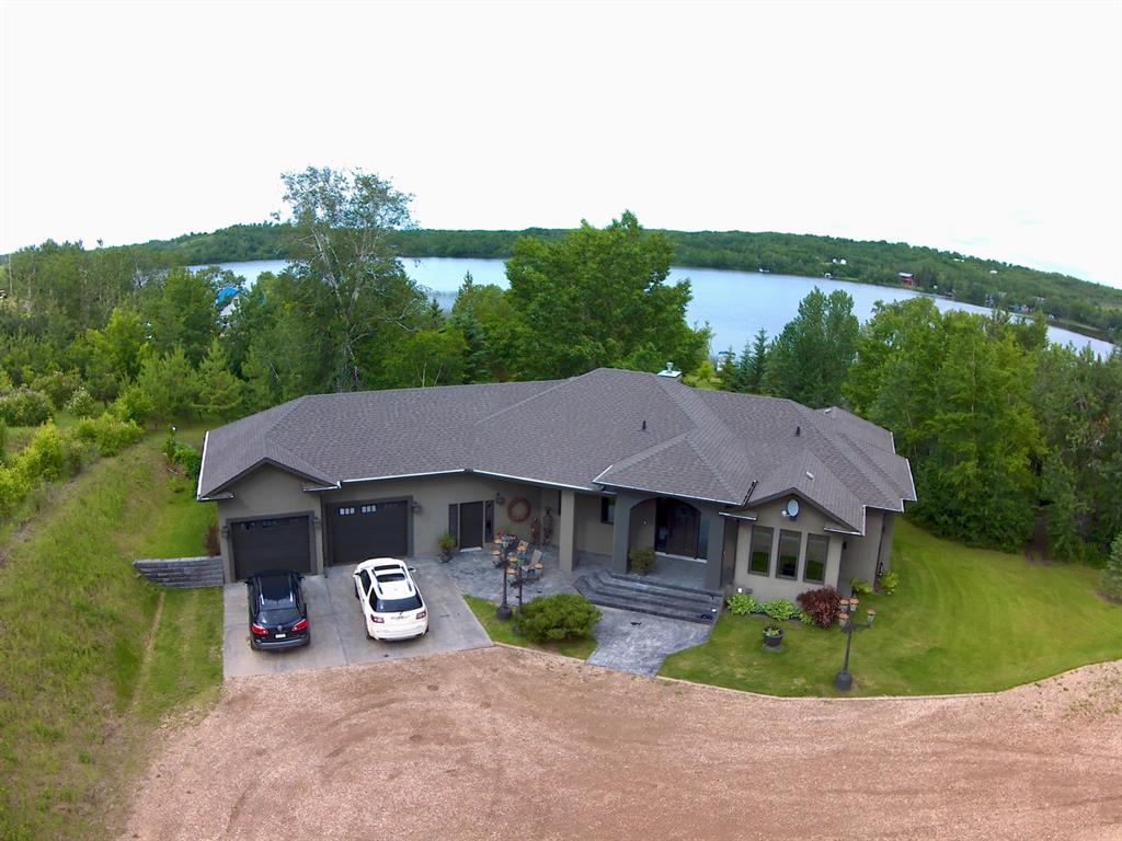 Year round living lakefront on Arm Lake with 8.14 acres of land just became more affordable! This custom built residence boasts a thoughtful floorplan, a large yard and is suited to indoor and outdoor living year round. No detail missed, you\'ll appreciate the triple oversized garage, and quality finishing throughout the home. The open concept entertainers kitchen is equipped with fantastic appliances, timeless cabinetry and an oversized island. Welcoming you to gather, the expansive living room is finished to perfection with beautiful large windows providing plenty of natural light and an exquisite two-sided fireplace. Dine al fresco on the beautiful, generous sized patio which overlooks the generous yard featuring outdoor fire pit, gazebo, RV hookup and access to the pier. The main floor master suite includes large windows for those beautiful views, a walk-in closet and spa-like ensuite. A second bedroom/office, laundry and bathroom complete the main. Leading out from the breakfast nook is a brilliantly designed covered deck that allows you the opportunity to bbq year round or simply sit around a fire table and enjoy the peace and serenity that comes with this property. As you make your way down to the walkout basement, you will be in awe of the expansive family room that looks out to the covered concrete stamped patio, the dry bar adjacent to the games area, two more bedrooms and a full bathroom. There is also plenty of storage in the large utility room. If you\'ve dreamed of lake life but want more space than your typical lake lot, then this is your opportunity to begin living life at the lake!