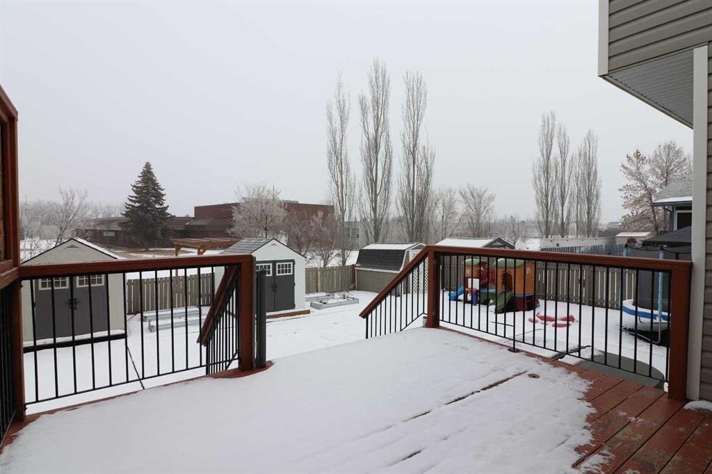 Outside, enjoy the beautifully landscaped, fully fenced backyard featuring a private deck conveniently located off the kitchen, garden beds, and multiple storage sheds. This home offers ample space inside and out and is perfect for families seeking comfort, style, and a great location. The play house and trampoline can stay if new owners want them. New washing machine as of 2025, New dishwasher as of 2024. All other appliances are from 2020. Furnace, AC & Water Heater new as of 2021.