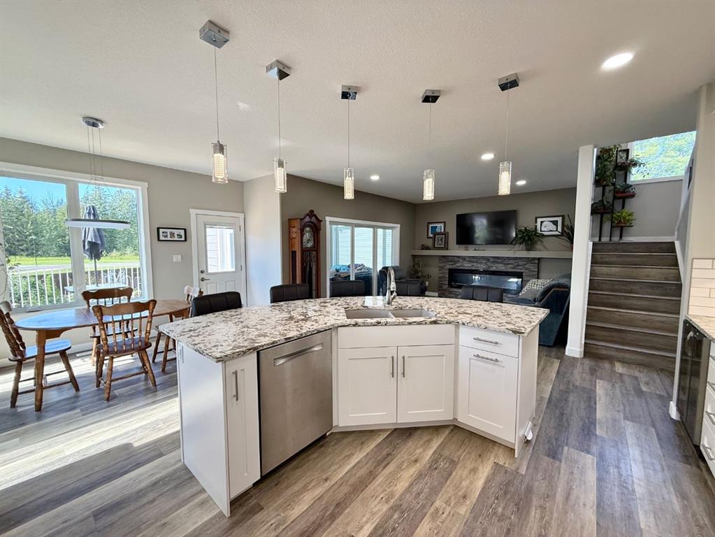 Custom Whitecourt Home. Step into unparalleled elegance with this meticulously designed 5 bedroom residence, where every detail exudes sophistication and comfort. Boasting a triple car garage with a convenient drive thru bay leading to the backyard, this home is tailored for both functionality and style. A dedicated dog wash station with hot and cold taps in the garage and EV Level 2 charging for your electric vehicle add modern convenience to your everyday living. The interior showcases wider, custom designed stairs for effortless furniture movement, quartz countertops flowing seamlessly throughout and a bedroom that’s transformed into a state of the art home theatre, perfect for immersive entertainment. A bar area downstairs complements the at home theatre, ideal for entertaining guests.