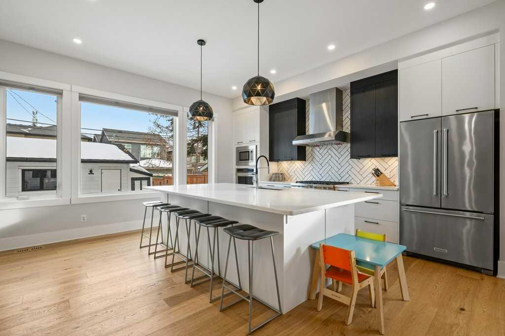 Stunning modern farmhouse located on a quiet street in the heart of the inner-city community of Renfrew. Custom built on a rare 60-foot lot with a 26-foot-wide footprint, this home offers exceptional space and functionality—ideal for growing families. The open-concept main floor is flooded with natural light and showcases 10-foot ceilings, wide-plank engineered oak flooring, solid core doors, custom railings, and a striking gas fireplace with floor-to-ceiling tile and built-in cabinetry from your family size front foyer into the West facing lifestyle room, the perfect start to this impressive plan.