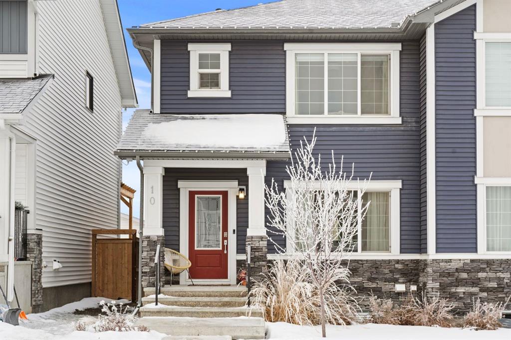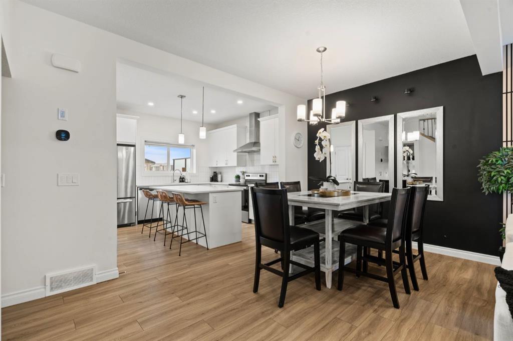 Welcome to this beautifully maintained 2-storey duplex in the heart of Cochrane, offering modern finishes, including smart technology with controls for lights, heat and door locks that can be controlled through your phone. As well as an Alexa doorbell. Thoughtful upgrades, and exceptional versatility in a neighbourhood loved for its proximity to schools, daycares, parks, and everyday amenities. The main level welcomes you with a bright, open-concept layout highlighted by vinyl plank flooring, recessed lighting, and stylish feature accents that add warmth and contemporary appeal. The inviting living room has large windows that flood the space with natural light creating an ideal setting for both everyday living and entertaining. At the heart of the home is the stunning kitchen, thoughtfully designed with quartz countertops, stainless steel appliances, crisp white cabinetry, and a large centre island with seating. Pendant lighting and a clean tile backsplash complete the space, while the adjacent dining area provides ample room for family meals and gatherings. A convenient main-floor powder room completes this level. Upstairs, you’ll find three well-sized bedrooms, including a serene primary retreat featuring a walk-in closet and private 4-piece ensuite. Two additional bedrooms are served by a second 4-piece bathroom, creating a functional and family-friendly layout. The upper level also includes convenient laundry located near the bedrooms and a thoughtfully designed built-in desk/workstation, perfect for homework, remote work, or creative use. The fully finished basement adds incredible flexibility and value, offering a spacious recreation area ideal for a home gym, media room, play space, or studio. This level also features a bedroom and bathroom, making it perfect for guests, teens, or extended family. Custom built-in storage and modern finishes complete this well-designed lower level. Additional highlights include central air conditioning for year-round comfort and a thoughtfully planned layout with 1,486 sq. ft. of above-grade living space, plus an additional 660.27 sq. ft. in the professionally developed basement. Situated in a welcoming Cochrane community close to parks, schools, daycares, and local amenities, plus enjoy, an outdoor pump track, skate park, and outdoor rink within a 5 min walk of the home. This home offers the perfect balance of style, comfort, and location ideal for families, first-time buyers, or anyone looking to enjoy small-town living with modern conveniences. Don\'t miss your chance to see this one today. Quick possession is available.
