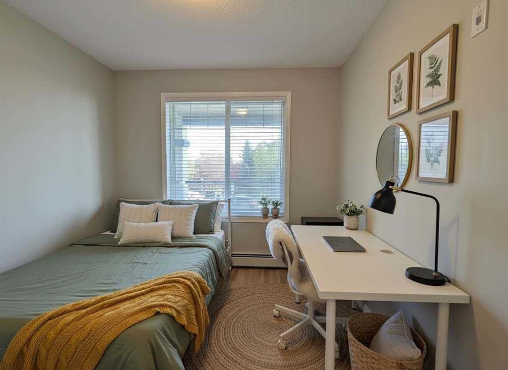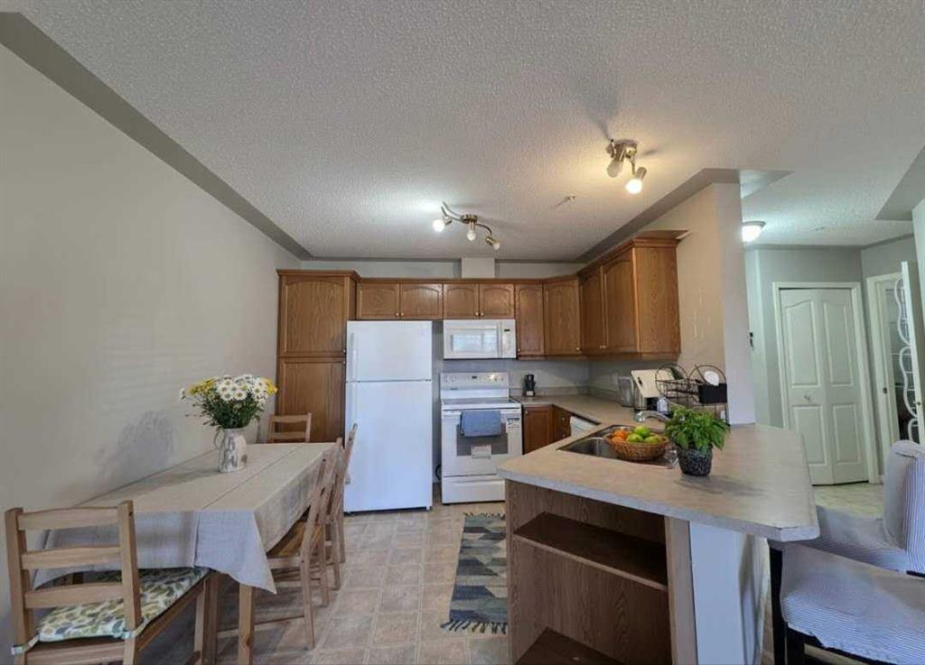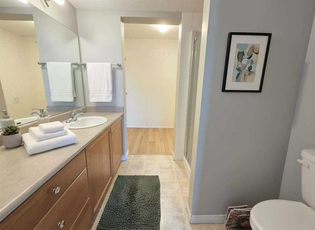 Welcome to The Pavilions at Rocky Ridge! This is a charming unit with 2-bedroom, 2-bathroom ground-floor condo that\'s filled with natural light! Enjoy the convenience of a titled underground parking stall. While this unit may seem to be on the first floor, it\'s technically on the second floor, as there is another unit on the ground level. Step inside to a bright, open layout with a seamless flow between the living and dining areas. The kitchen offers plenty of cabinet and counter space, and all appliances in the kitchen were replaced just one year ago. The open-concept living space is perfect for relaxing or entertaining guests. Brand new waterproof vinyl plank flooring, installed just last week, adds a fresh, modern look and makes cleaning a breeze. Step outside onto your large, south-east-facing covered balcony—a great spot for morning coffee or quiet evenings. The primary bedroom is tucked away for privacy and features a 3-piece ensuite and walk-in closet. A spacious second bedroom is conveniently located near the 4-piece main bathroom. In-suite laundry adds to the convenience of this well-maintained home. Residents also enjoy access to on-site amenities including a fitness center, theatre room, party room, and more. Located in a fantastic area with easy access to public transit, shopping, restaurants, walking paths, and major routes—this is a home that offers both comfort and convenience. Please invite your realtor for a showing.