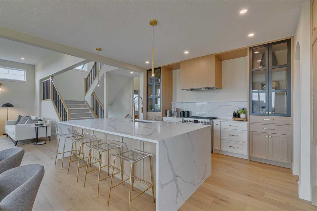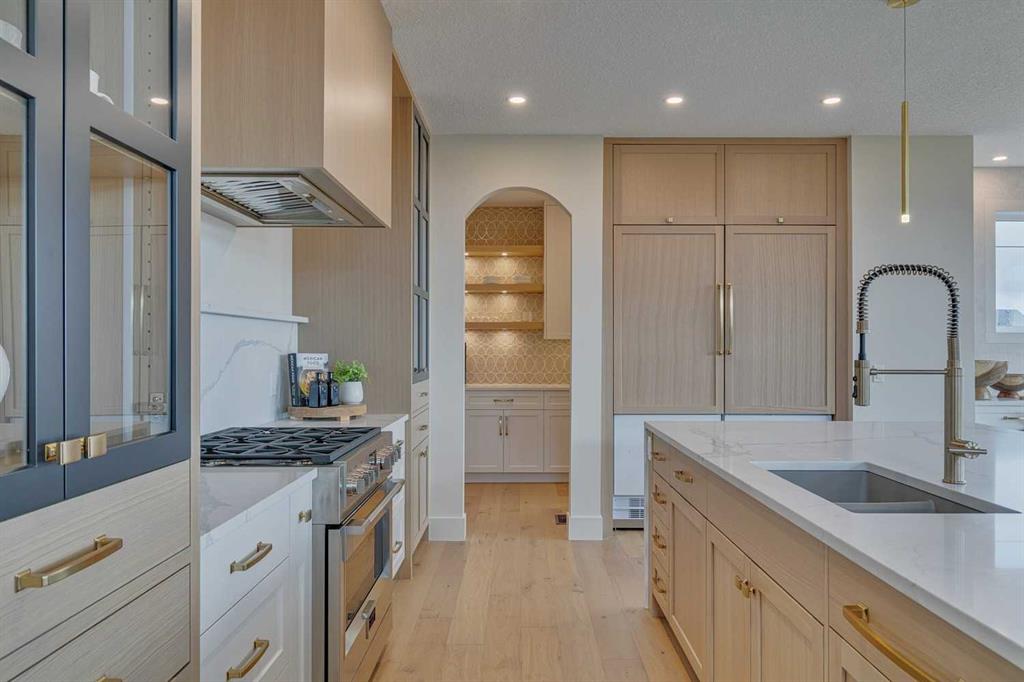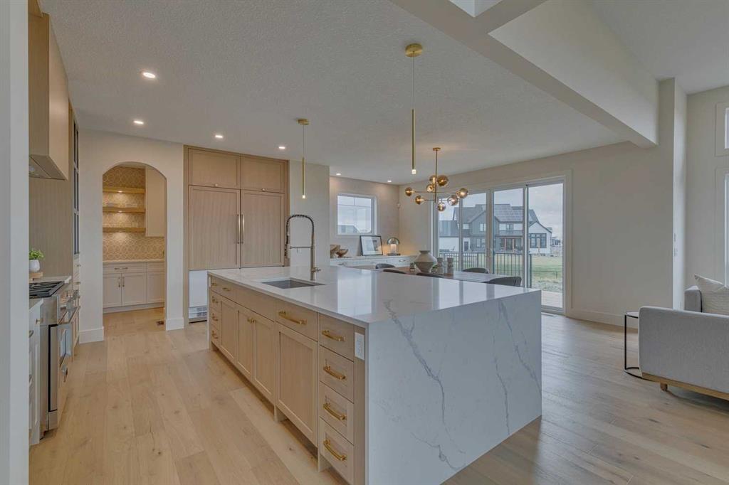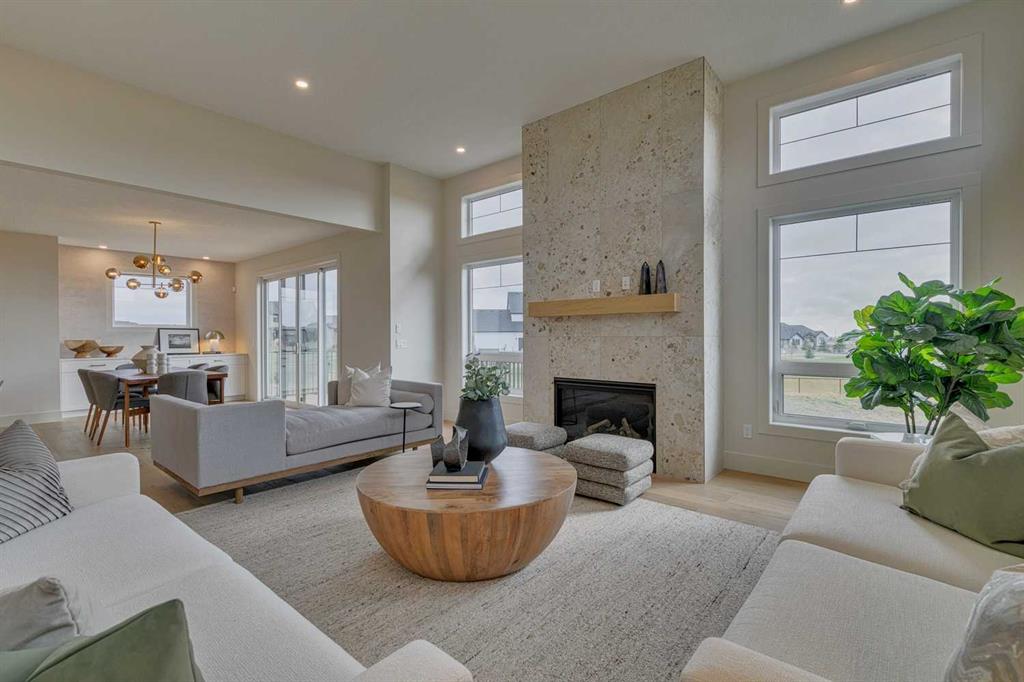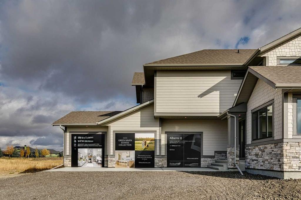 This \"Alberni\" Show Home is one of Fifth Avenue Homes most popular plans! A traditional two-storey offering a total of 4,148 sq.ft. of luxury living space including professional basement development! The great room features a gas fireplace and 20\' ceiling, adjoining dining area with a sliding door to the 14\'x17\' deck (with BBQ gas line) and access to the large yard. Dream kitchen with built-in fridge, oversized island & 4 stool breakfast bar, Quartz countertops and a walk-through butler’s pantry. Completing the main floor is the front den, a 2 piece bathroom and mudroom with direct access into the garage. The upper level has the perfect room count: an oversized primary suite with a spa-style 5 piece ensuite and walk-in closet, 2 additional bedrooms, 5 piece bathroom and laundry room! The lower level is developed with a family room featuring a gas fireplace, glass wine cellar and wet bar, home gym, 4 piece bathroom, hobby/craft room and mechanical room. Awesome oversized triple attached garage with additional storage or room for a workshop. This home has many upgrades including engineered hardwood, custom tile, closet organizers & wood shelves, Hardie board siding and 30 year shingles. Full Builder and New Home Warranties. Green Haven Estates is located minutes east of Okotoks offering peaceful country living! Less than 30 minutes to the South Campus Hospital and Calgary’s amenities too! Early 2026 possession available.