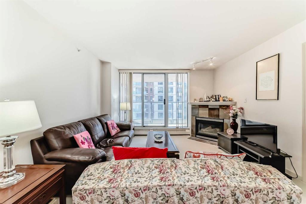 Welcome to the Axxis Condo , a luxurious concrete construction in the heart of downtown, developed by Bosa. This well maintained condo boasts spacious open concept layout, complete with 2 bedrooms, 2 full bathrooms, insuite storage, and an abundance of natural light pouring in through the large west facing windows. The living room is perfect for relaxation and entertainment, complete with a cozy gas fireplace. The kitchen is equipped with ample counter space, an island, including a newer fridge, additional features include insuite laundry with newer washer & dryer. Assigned storage locker on the ground floor. Included one underground parking. The building itself offers a range amenities, including a fully equipped exercise room, you can meet friends in the party room, which has its own kitchen and opens out onto the beautiful landscaped garden, this condo is just steps away from the LRT, outstanding bakeries, cafes, great restaurants and fine dining, and everything downtown has to offer.