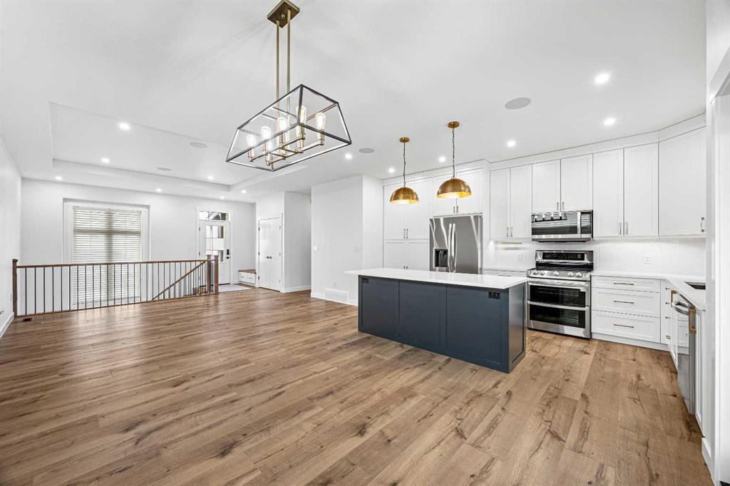 This one of a kind 1472 square foot raised bungalow is the one you have been waiting to come on the market- built in 2023, this home looks and feels like its brand new... best of all it is fully finished inside and outside and ready for the next owners to just move in and enjoy. The location is second to none-located in prestigious Lakeside of College Park, this raised bungalow has it a!} with exceptional street appeal complimented by a large front living room framed with board and Batton trim, high roof lines, oversized triple attached heated garage, RV parking area, rear overhead garage door to backyard space, stone accents, rear covered deck and fully landscaped (no maintenance). Inside is a masterpiece of thought and creativity with 9\' ceilings on the main floor and 9\' ceilings in the basement, a 6\" tray ceiling in the living room complete with built in sound and pot lighting, off white custom kitchen with cabinets that extend to the ceiling with gleaming quartz counter tops and backsplash accenting this timeless kitchen cabinet color combination. That\'s not all, add to this main floor laundry/mud room conveniently located off the interior garage entrance, Tile shower and dual sinks in primary bedroom bathroom, triple glazed windows, surround sound, central air conditioning, water softener, high end laminate flooring/custom nosing and tile on the main floor area, fully finished basement with built in bar area, 3+2 bedrooms and 3 bathrooms, custom railing, smart home integration allowing you to literally run this home from your phone- the list goes on and on... you wont want to miss seeing this home!!