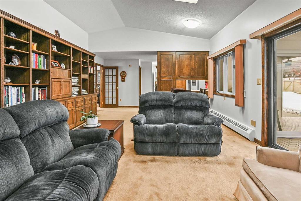 Back on Market and Priced to Sell. Nestled on an expansive 100’ lot in Innisfail, this custom-built bungalow is a rare gem, meticulously maintained by its original owners. Situated on TWO standard-sized lots, the maturely landscaped property boasts a programmable irrigation system, two rear RV-sized parking pads, a greenhouse, and two storage sheds. Built with premium materials, the home features engineered roof trusses, a gorgeous concrete tile roof, and a stucco exterior with striking Tyndall Stone accents. Inside, the sprawling main floor showcases exquisite custom woodwork, all built on-site by a local second-generation craftsman, adding a level of detail and quality rarely found. The chef’s kitchen offers custom-built cabinetry, a walk-in pantry, and updated stainless steel appliances, flowing into a bright family room with skylights, built-in wood bookshelves, and a stunning European-style fireplace with stonework. The formal dining room features a built-in china cabinet and French doors leading to the living room. The primary suite is a retreat with a walk-in closet and a luxurious 6-piece ensuite with a jetted tub, dual sinks, separate shower, and bidet. Two additional bedrooms, a 4-piece bathroom, a home office, main-floor laundry with built-in cabinets, and a powder room complete this level. The fully finished basement offers a huge family room with a second European-style fireplace, two large bedrooms, a 3-piece bath, cold storage, and 2 storage rooms. With a separate entrance from the oversized heated 3-car garage, this basement is perfect for teenaged kids or extended family. Additional features include a commercial-grade 9-zone hot water boiler system, dual hot water tanks, a reverse osmosis system, water softener, central vacuum, and an impressive 4-season sunroom overlooking the beautifully landscaped backyard. A one-of-a-kind home that offers space, elegance, and timeless craftsmanship!