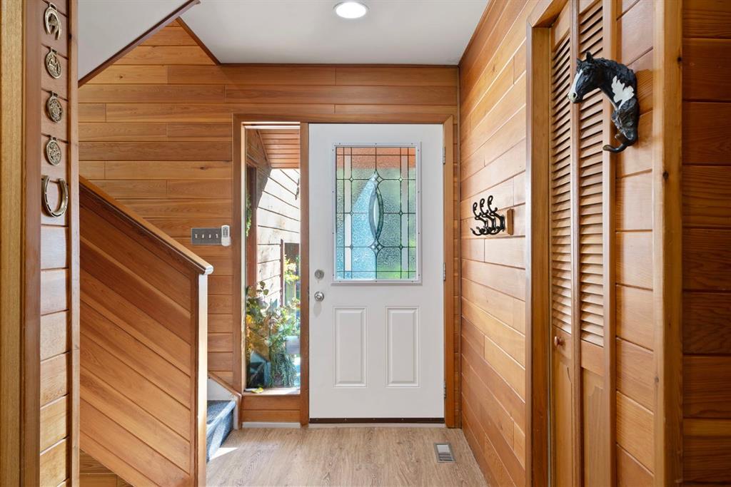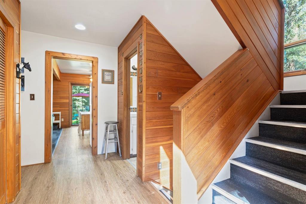 ***OPEN HOUSE THIS SATURDAY, JANUARY 10TH, FROM 11 AM - 2 PM*** Escape to your own private 2.51 acre woodland paradise with this charming 4-bedroom, 2-bathroom home set on a beautifully treed lot in the serene Benchlands community. Nestled among towering evergreens, this property offers peace, privacy, and the perfect blend of rustic charm and modern comfort. Inside, warm wood accents and vaulted ceilings with skylights create a bright, inviting atmosphere. The sun filled living room features large windows overlooking the forest and a cozy airtight wood burning stove set against a stone feature wall. The spacious kitchen offers ample cabinetry, a gas stove, and direct access to the outdoors, ideal for both everyday living and entertaining. Bedrooms are generously sized, and bathrooms include unique touches such as vibrant tile work and wood finishes. The property includes an oversized detached garage with space to park 2 cars plus workshop space for quads or motorbikes, or woodworking, plenty of parking with a carport also attached to the house. Lush green space for outdoor activities, and the ability to have 2 horses onsite with corrals and horse shelter already in place. With its private driveway, fire pit area, and direct access to nature, this home is perfect for year-round living or a weekend getaway with easy access to the Waiparous area crown lands and the Ghost River just a few minutes walk from your front door. Call to book a showing today. New Starlink internet system just installed and will be left with the property. New roof 2024, new flooring 2024, new paint.