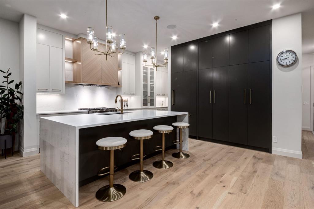 Experience the pinnacle of luxury living in this exceptional \"ELLE Decor\" residence by Willix Developments, where unparalleled craftsmanship meets timeless design. Boasting over 4,000 square feet of meticulously developed living space, this sophisticated home is perfectly positioned on a generous lot with a sunny, south-facing backyard, offering privacy, elegance, and space for outdoor entertaining or relaxation. A detached, heated triple garage adds convenience, while the vibrant heart of Marda Loop, with its eclectic shops, cafés, and cultural offerings is just a short stroll away, blending urban lifestyle with the tranquility of a private retreat. From the moment you enter, the home impresses with its soaring ceilings on all three levels, extensive exterior brick detailing, and a thoughtfully designed floor plan. Natural light pours through large windows, highlighting every detail of the refined interior, from designer light fixtures and striking wallpaper accents to exquisite millwork, tile detailing, and wide-plank white oak hardwood floors. The seamless flow of the living spaces creates an inviting atmosphere, ideal for both everyday family life and sophisticated entertaining. The chef-inspired kitchen is a statement of modern luxury, featuring a full Miele appliance package, sleek custom cabinetry with ample storage, quartz countertops and backsplash, and a generous center island perfect for meal preparation or casual gatherings. Adjacent spaces flow effortlessly into the dining and living areas, anchored by a gas fireplace framed by custom-designed built-ins that create warmth and intimacy. The private primary suite is a true sanctuary, complete with a spa-inspired steam shower, a spacious dressing area, and a coveted makeup area. Three additional bedrooms are generously proportioned, providing comfort for family or guests. For productivity and wellness, the home offers a main-level office and a lower-level gym, along with a temperature-controlled glass wine display for the discerning collector. Radiant in-floor heating in the basement ensures comfort year-round, while thoughtful touches throughout emphasize quality and attention to detail. This residence is more than just a home - it is a lifestyle. Imagine relaxing on the sunny patio, or walking to nearby cafés, boutique shops, and local entertainment. Excellent schools, parks, and a community center are all within easy reach, making this location ideal for families seeking convenience without compromising sophistication. The combination of indoor luxury and outdoor living creates a perfect harmony that caters to both relaxation and vibrant social living. Every aspect of this home reflects refinement, quality, and attention to detail, providing an unmatched living experience in one of the city’s most desirable locations. From morning coffee in the kitchen to evening gatherings by the fireplace, every day is elevated by the thoughtful design, premium finishes, and enviable lifestyle this property affords.