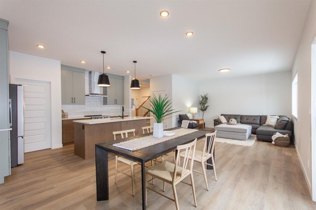 Situated close to the numerous amenities of Timberlands and Clearview Market, a school, and numerous parks and playgrounds, this brand new Laebon home is the perfect place to grow your family! This best selling floor plan offers 9\' ceilings on the main floor, pot lighting, large windows, and a spacious open living space that is perfect for entertaining. Luxury vinyl plank runs throughout the main floor for the best in low maintenance and durability. This spacious kitchen offers raised two tone cabinetry, quartz counter tops, stainless steel appliances, island with eating bar and under mount granite sink, and a walk in pantry, while the adjacent eating area is large enough to accommodate the whole family. The living room and dining space enjoy views over the yard, and a sliding glass patio door provides access to the rear deck. The second floor offers a spacious and bright bonus room, two generously sized kids rooms that share a 4 pce bath, and convenient upper floor laundry. The primary suite is large, and the ensuite is a great place to start and end your day, with dual sinks, a freestanding soaker tub, oversized shower, water closet, and spacious walk in closet. The attached garage offers a floor sump and is insulated, drywalled, and taped. If you need more space, the builder can complete the basement development for you, and allowances can also be provided for blinds, and a washer and dryer to make this a completely move in ready package. 1 year builder warranty and 10 year Alberta New Home Warranty are included. Immediate possession is available, and GST is already included in the purchase price. Taxes have yet to be assessed.