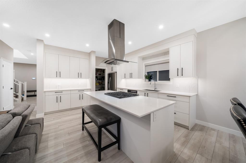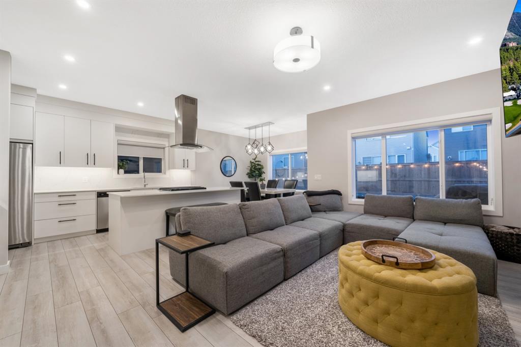 Experience elevated luxury living in the prestigious NW community of Carrington. This stunning custom Truman-built home offers 2,340 sq. ft. of refined living space, showcasing timeless design, exceptional craftsmanship, and premium upgrades throughout. The open-concept main floor features 9-foot ceilings, abundant natural light, and a chef-inspired gourmet kitchen with gas range, chimney hood fan, marble backsplash, oversized island, and under-cabinet lighting. The elegant living room is anchored by a gas fireplace, creating the perfect space for entertaining. A main-floor bedroom with a full 4-piece bath adds rare flexibility for guests or multigenerational living. Upstairs, enjoy four spacious bedrooms, a bonus/family room, upper-level laundry, and two full bathrooms, including a luxurious primary retreat with a spa-like 5-piece ensuite and walk-in closet. Meticulously maintained and in prestige condition, this exceptional home blends luxury, comfort, and functionality in one of NW Calgary’s most sought-after communities. A rare opportunity not to be missed.