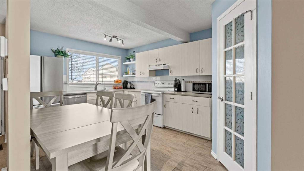 Welcome to this move-in-ready townhome in Marlborough Park! Enjoy an open-concept main level filled with natural light, featuring a spacious kitchen with plenty of cabinetry, large pantry and tons of counter space, a generous living room area with sliding patio doors leading to a private, low-maintenance yard and an open deck area for BBQ\'s and lounging. Upstairs holds three bedrooms and a full 4-piece bath. The partially finished basement adds valuable living space with a second 4-piece bathroom, laundry, and a flexible area for a home office, rec room, or storage. Ideally located near the complex entrance, this property comes with 2 assigned parking stalls right in front of your unit entrance and all new appliances in the last year (fridge, stove, dishwasher, microwave, washer and dryer).