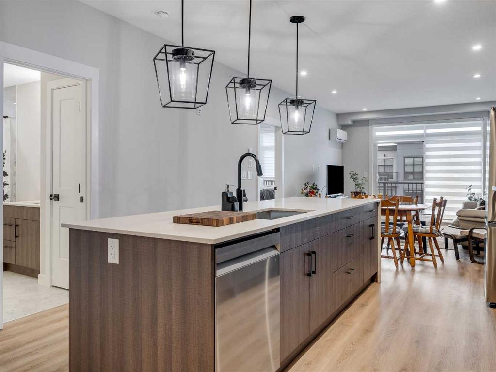 Experience the pinnacle of modern, low-maintenance living in this pristine top-floor 2 bed, 2 bath, corner unit, bathed in natural light from its full southwest exposure and offering breathtaking mountain views from its generous west-facing deck. Perfectly suited for first-time buyers or those seeking to downsize without compromise, this immaculate residence features an open-concept layout anchored by a gourmet kitchen with a stunning waterfall quartz island, seamlessly flowing into the dining and living areas—an ideal space for entertaining. The tranquil primary bedroom is a private retreat complete with a walk-in closet and a luxurious ensuite, while a second bedroom with ensuite access offers versatility for guests or family. Designed for year-round comfort and convenience, this move-in-ready home includes the essential luxury of built-in air conditioning, in-suite laundry, underground parking, underground storage and is situated in the vibrant heart of Seton, just steps from shops, restaurants, the South Health Campus, and with easy access to major commuter routes. This is an exceptional opportunity to own a home that shows better than new in one of Calgary\'s most sought-after communities; contact your favorite real estate agent today to schedule a private showing.