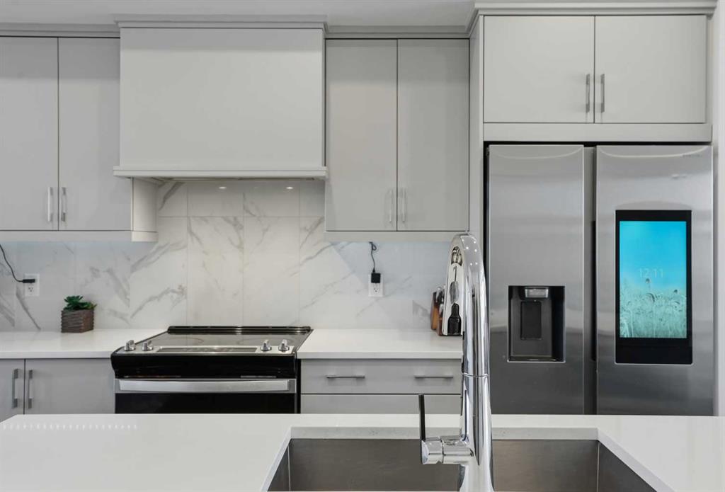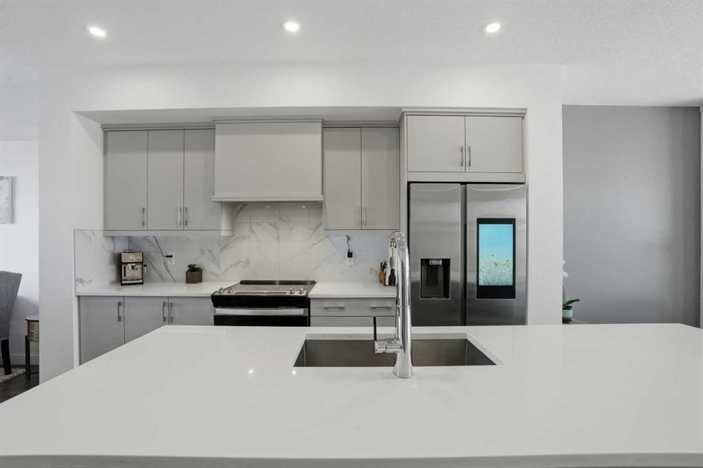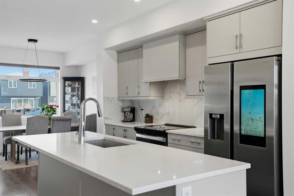 ** No Condo Fee Townhome ** 1,583 SqFt | Finished Basement 698 SqFt | 4 Bedrooms | 3.5 Bathrooms | Gorgeous Modern Finishes | Quartz Countertops | Full Height Kitchen Cabinets | Stainless Steel Appliances | Kitchen Island with Barstool Seating | Pantry | Open Floor Plan | Accent Walls | Large Windows | Incredible Natural Light | Electric Fireplace | 3 Upper Level Bedrooms | Primary Ensuite | Upper Level Laundry | Great Basement Recreation Space | 1 Bedroom & 3pc Bath in Basement | Storage | High Efficiency Furnace | LED Lighting | SMART Home Access | Fully Fenced Backyard | Rear Parking with Alley Access | Location Location Location | 5 Minute Walk to The Block Community Centre Designed for an Enriched Community. Welcome home to the stunning 2-storey family home boasting 2,281 SqFt of developed living space throughout the main, upper & basement levels. This home\'s designed with both style & comfort in mind! The beautiful modern finishes are spread throughout the home from top to bottom, wide plank flooring, LED lighting, large windows, quartz countertops, smart appliances, smart home, & more! Open the front door to a foyer with great closet storage & views into the bright & welcoming main level. The front living room is framed with large windows that fill the space with natural light, an electric fireplace & a TV ready wall above. The open floor plan makes this the perfect home to host friends & family for engagements. The kitchen is outfitted with full height cabinets, stainless steel appliances, a smart refrigerator, quartz countertops & a centre island with barstool seating space. Across from the island is a pantry great for dry goods storage. The dining room has a large window that overlooks the backyard. The rear of the home has a mud room with additional closet storage & a 2pc bathroom is a beautiful blue mosaic tile. Upstairs holds 3 bedrooms, 2 bathrooms & hall laundry. The primary bedroom has a private 4pc ensuite bath with a tub/shower combo. Bedrooms 2 & 3 are a great size & share the main bathroom. The upper level hall laundry is great as it doesn\'t take away from any of your living space & its located near the majority of the bedrooms. Downstairs has a great rec room for comfortable evening relaxation with the family! This space is full of style; the accent wall adds texture & depth to this space & the farmhouse sliding door that leads to the utility room is great as it minimizes space that would be needed to open a traditional swing door. The basement bedroom is a bonus for a larger family or welcoming overnight guests. This bedroom has a walk-in closet & is located beside the 3pc bathroom with a walk-in shower. Theres plenty of storage in this home for seasonal items too. Outside has a great fully fenced backyard with a gate to your rear parking pad for 2 vehicles accessed through the parking pad. Enjoy access to the 14,000 sq. ft. Block Community Centre and its gym, multi-use spaces, and extensive outdoor amenities. Hurry & book your showing today!