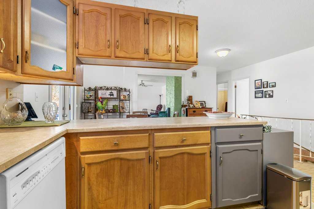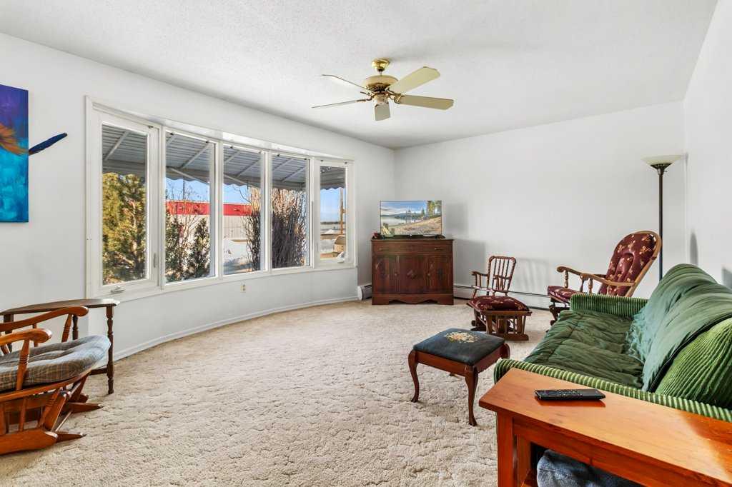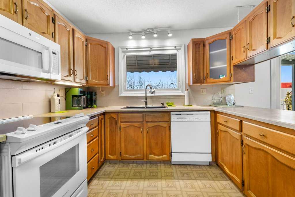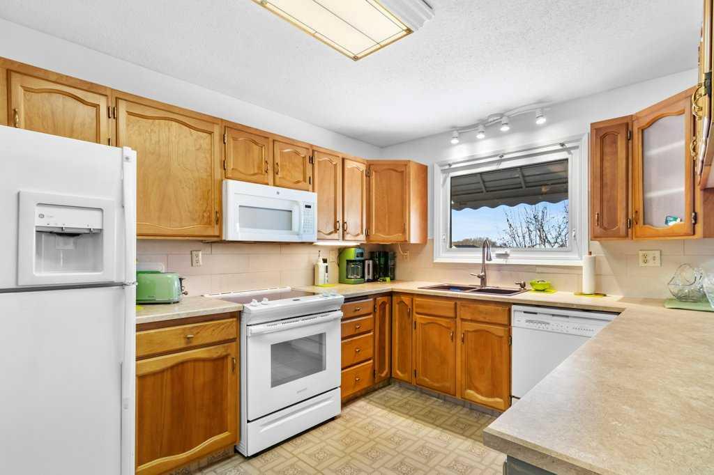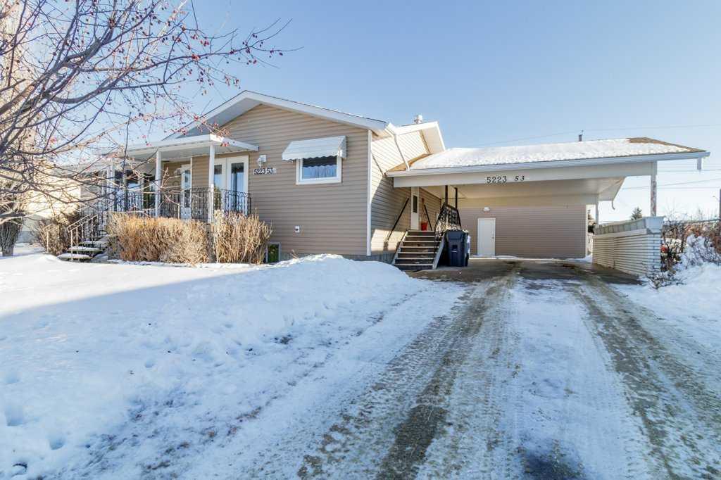 Welcome to this bright, freshly painted bungalow nestled in the quiet and welcoming town of Eckville, where comfort, functionality, and small-town charm come together. A west-facing front entrance and deck create an inviting first impression, while a large bay window floods the living room with natural light. A wood-burning fireplace adds warmth and character, making the space especially cozy during the winter months. On the east side of the home, an 8\' x 14\' pressure-treated deck overlooks the backyard—an ideal spot for morning coffee or relaxed evening gatherings. The property offers excellent parking and storage options with a paved front driveway and carport, plus rear alley access to a double garage complete with an 8\' overhead door. Inside, the main floor features a bright kitchen, two bedrooms including one with a convenient two-piece ensuite, a four-piece bathroom, and main-floor laundry for added ease. Recent upgrades include shingles less than 10 years old, windows replaced approximately 10 years ago, an upgraded electrical panel, and a hot water tank installed in 2021. The fully developed lower level provides additional living space with a large family room, a third bedroom, a half bathroom, and generous storage. A spiral staircase connects both levels, and a separate exterior entrance from the carport offers added flexibility and privacy. Additional features include hot water heating, a water softener, a built-in vacuum system, and a mature, beautifully treed yard that provides shade and privacy. This well-maintained home is move-in ready and perfectly suited for comfortable living in a friendly, community-oriented setting.