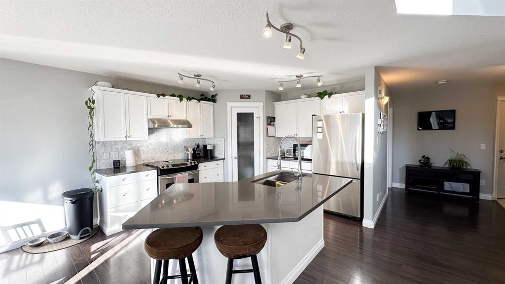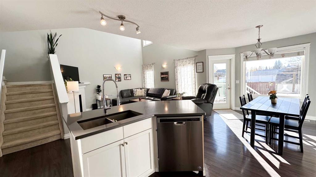 Get excited to see this beautiful two-story family home on a quiet street in one of Sundre’s most sought-after neighborhoods — just a short walk from schools, parks, the arena, and walking trails, close to biking trails and access to the river for the fishing enthusiasts. This property has back lane access and no neighbors directly behind, making it very private but also has more parking room in the back alley. Sundre is a small town with great schools, amenities, clubs, sports, medical services and opportunity, especially for nature lovers. The open-concept main floor features vaulted ceilings, large windows, and plenty of natural light, creating a warm and inviting atmosphere. You’ll love the bright living area with natural gas fireplace, spacious and well laid out kitchen and dining space with patio doors to the deck for summer outdoor entertainment, and the convenience of main floor laundry and a two-piece bathroom. Total of 1725 Sq ft above grade with a fully developed basement and double garage built in 2006, Upstairs, you will find three comfortable bedrooms and two full bathrooms, including a lovely primary suite with room to unwind, a large 4 piece ensuite and walk in closet. The fully developed basement adds even more living space with a family room, fourth bedroom, and another full bathroom — ideal for guests or teenagers. Enjoy the outdoors in your south-facing backyard, offering all-day sun, no neighbors behind, and lane access with extra parking. Relax or entertain on the private decks and soak in the hot tub under the stars. A double attached garage and modern, light-filled design make this home a perfect combination of comfort, style, and functionality — the ideal place to settle in and enjoy all that Sundre has to offer.