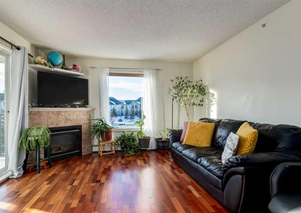 Welcome to this beautifully maintained 2-bedroom, 2-bathroom end-unit condo in the desirable community of Evergreen SW, offering added privacy, abundant natural light, and southwest-facing balcony views—perfect for enjoying afternoon sun and sunsets. A spacious foyer welcomes you into the home, leading to an open-concept layout highlighted by rich cherry laminate flooring and a cozy gas fireplace with a stylish mantle, creating a warm and inviting living space that flows seamlessly into the dining area and out to the balcony, ideal for both everyday living and entertaining. The spacious kitchen offers ample cabinetry and counter space, making it both functional and welcoming. The primary bedroom features a walk-through closet and private ensuite, while the second bedroom and full bathroom add flexibility to the layout. Additional highlights include titled heated underground parking, extra storage, and the convenience of a well-managed complex, all just minutes from coffee shops, grocery stores, bike paths, parks, transit, and the many amenities Evergreen has to offer—bright, private, and exceptionally located condo living at it\'s best. Book your private showing today!