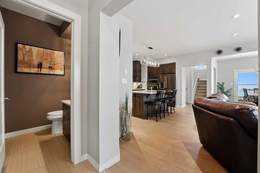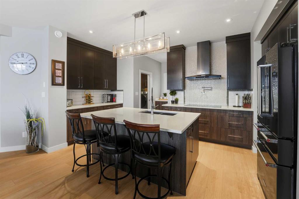 Experience the height of modern luxury in this custom-built Mason Martin home, where an abundance of designer windows creates a beautifully bright and open atmosphere. The gourmet kitchen is a chef’s dream, featuring premium quartz countertops, a stylish backsplash, slate appliances, an induction stovetop with a pot filler, and both walk-in and butler’s pantries. Uniquely designed for convenience, the spacious primary suite is located on the main floor and boasts a luxurious ensuite with a custom no-lip shower and walk-in closet. The upper level offers two additional bedrooms and a sun-drenched bonus room ideal for an office or play space, while the massive walk-out basement features in-floor heating ready for your future development. Complete with central A/C, a heated flex room off the garage perfect for a gym or workshop, and footings already in place for a future deck, this one-of-a-kind property is perfectly situated at the end of a quiet close with a stunning view.