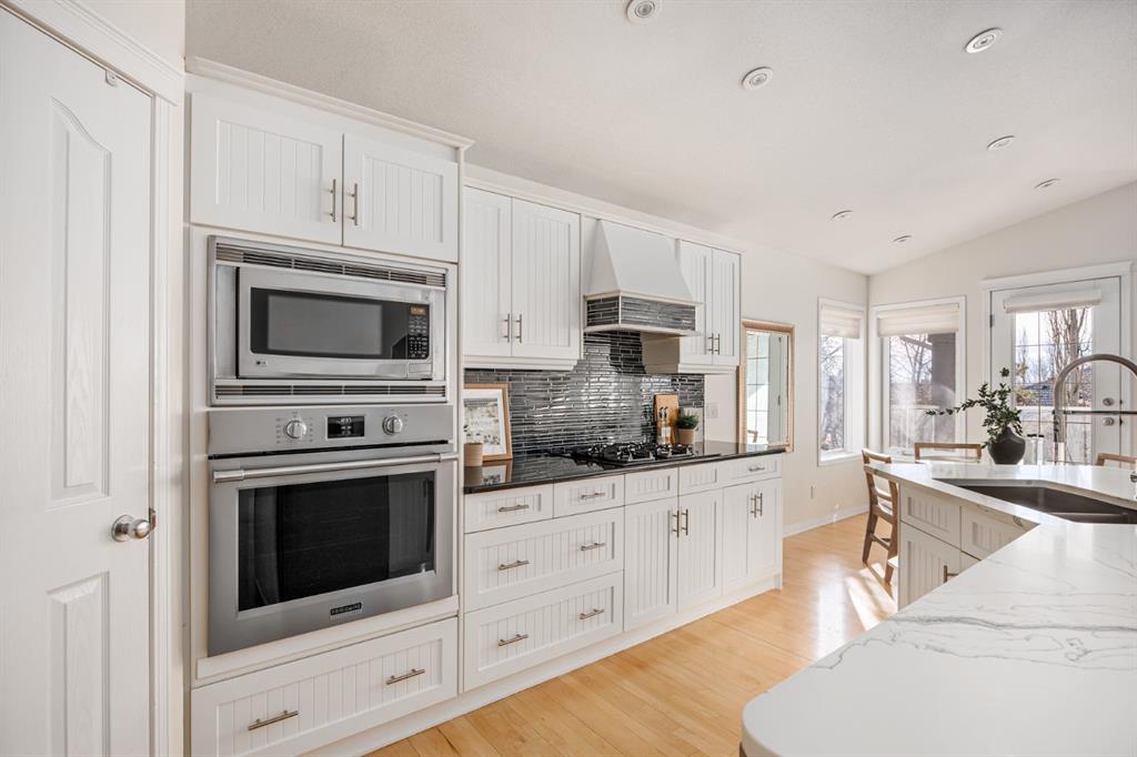 Step through the grand entrance and be greeted by soaring vaulted ceilings and an inviting, light-filled layout designed for everyday living and entertaining. The main floor features a spacious living area anchored by one of two gas fireplaces, creating a warm and welcoming atmosphere. The kitchen is both stylish and functional, complete with granite countertops, a built-in oven, gas cooktop, ample cabinetry, and thoughtful built-ins throughout the home.