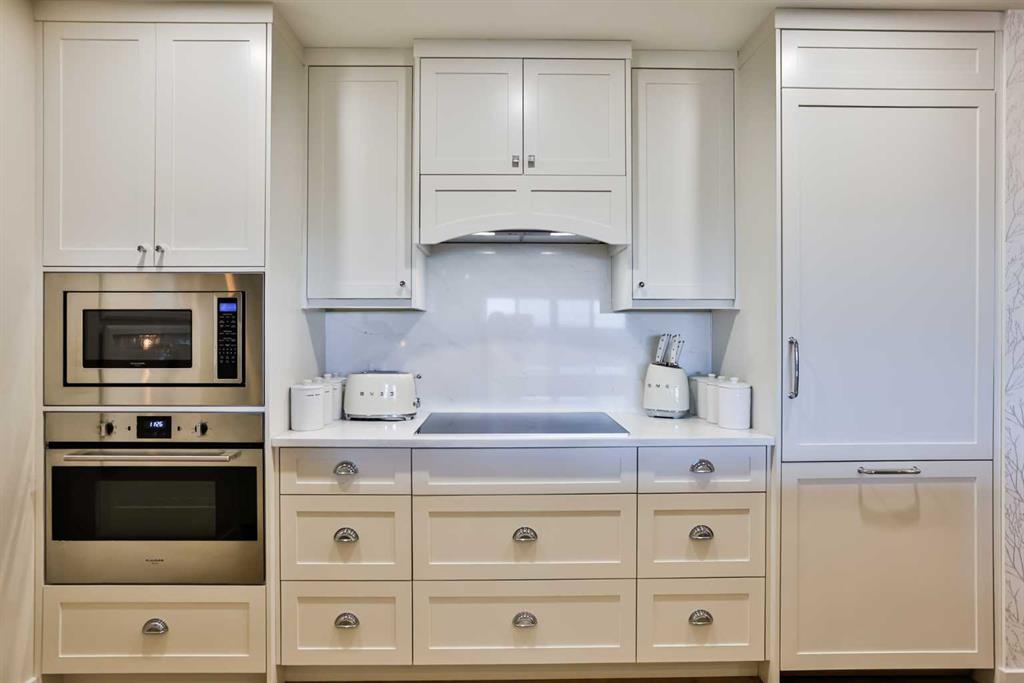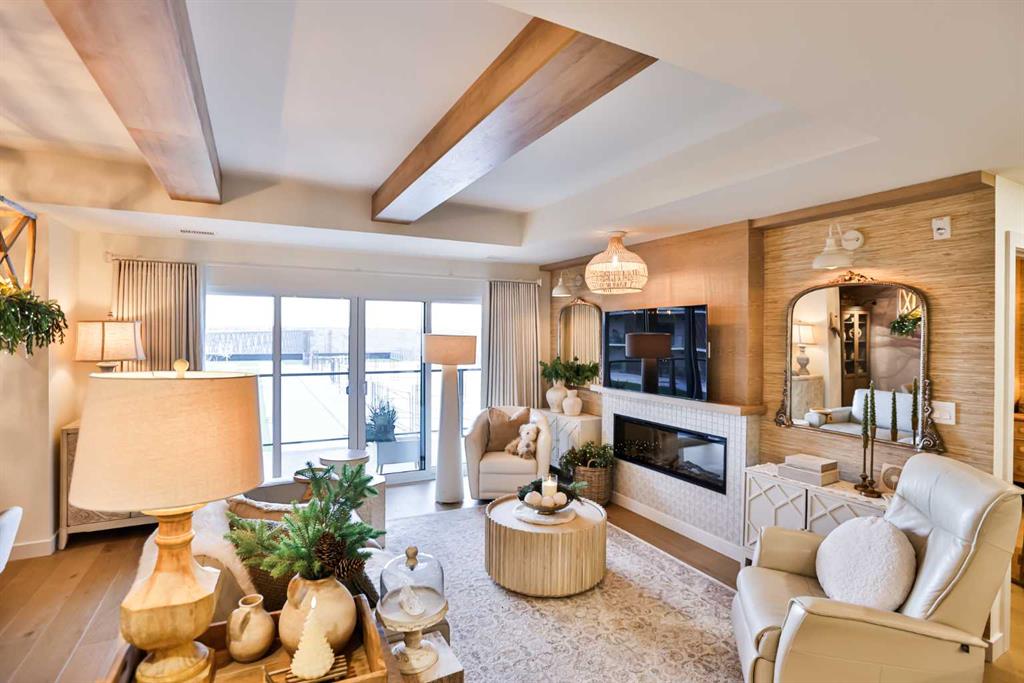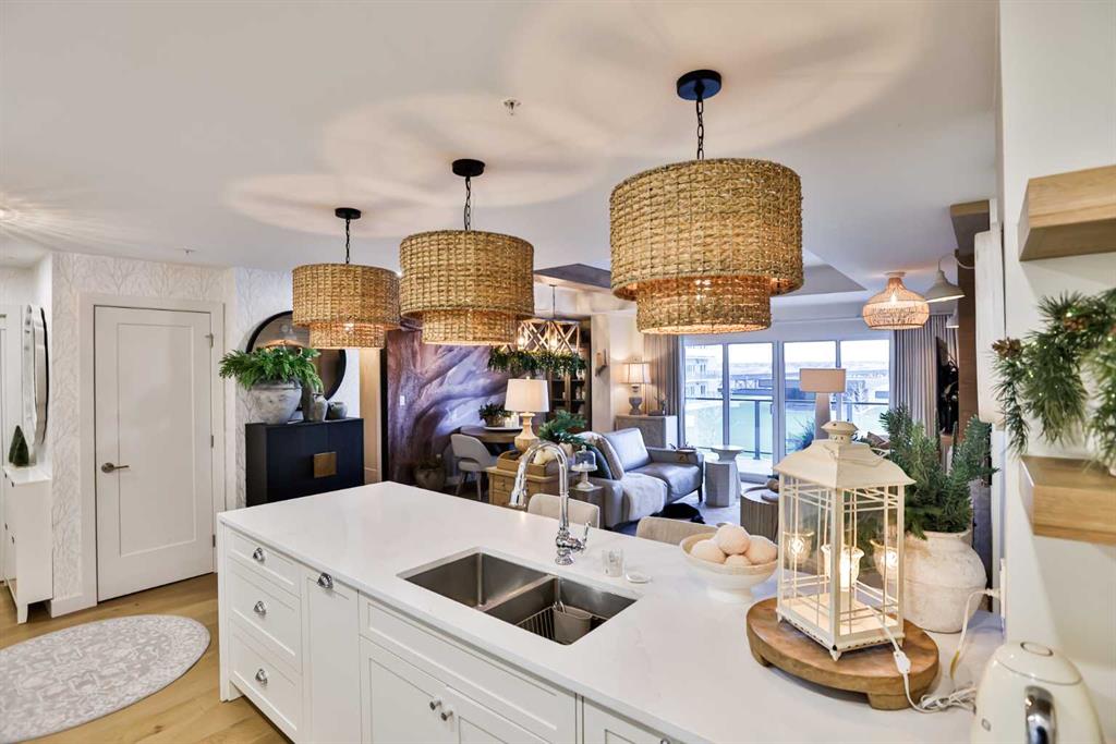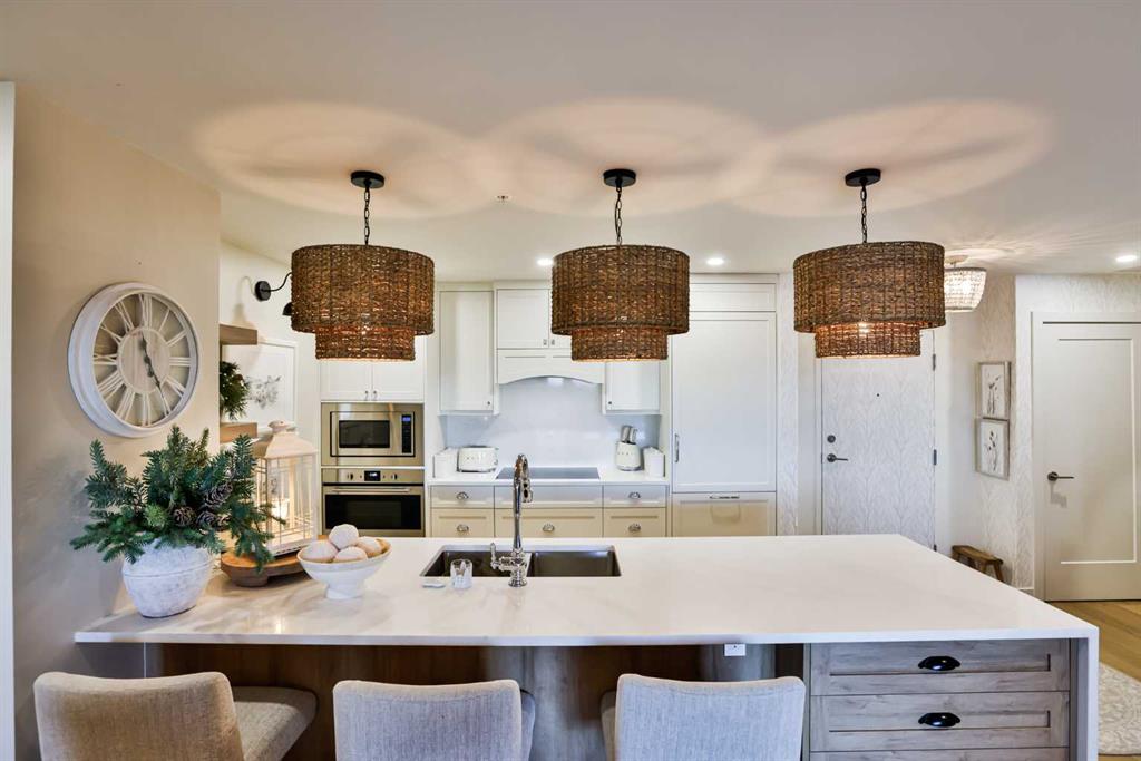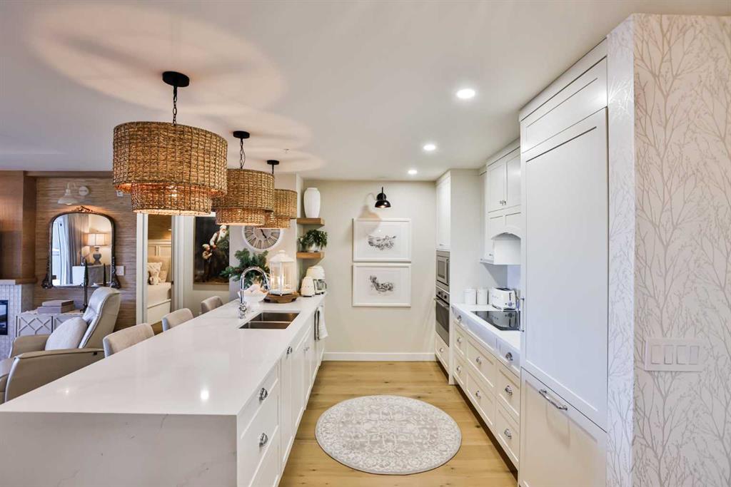 Luxury condo living with stunning views at 102 Scenic Drive. This beautifully decorated, high-end 2 bedroom, 2 bathroom residence offers over $40,000 dollars worth of upgrades to create a truly amazingly appointed and unique home. The inviting living space features a lovely dining room and living room space that blend together seamlessly featuring a built-in fireplace and large custom wood beams, all overlooking the courtyard. This condo is decorated in warm neutral colors, bleached wood laminate floors, and custom paint and wallpaper features in every room. The custom kitchen showcases off-white shaker cabinetry, custom paneled fridge and dishwasher, built-in wall oven and microwave, and an induction cooktop with a custom hoodfan. The upgraded fridge offers water and ice dispenser for true convenience. The finishing touch to this beautiful kitchen is the crisp quartz countertops with a custom quartz waterfall edge on the peninsula and a full seamless quartz backsplash behind the stove. The gorgeous master suite has a large walk through closet with custom built-in cabinets, a glass tiled shower, vanity with make-up desk and extra tall vanity cabinet, quartz countertop, and sliding glass doors to the balcony. The second bedroom can function either as a guest bedroom or your personal home office, featuring tall floor to ceiling custom cabinets and sliding glass doors to the balcony. The expansive balcony offers an amazing view and access from every room in the condo. The underground parking and storage unit included with this condo are perfectly located close to the elevator to add everyday ease. Enjoy exceptional building amenities including a gym, sauna, theatre, golf simulator, car wash and more. A rare opportunity to enjoy luxury, views, and the convenience of lock-and-leave living, in one of Lethbridge’s most desirable locations. Contact your favorite real estate agent to view.