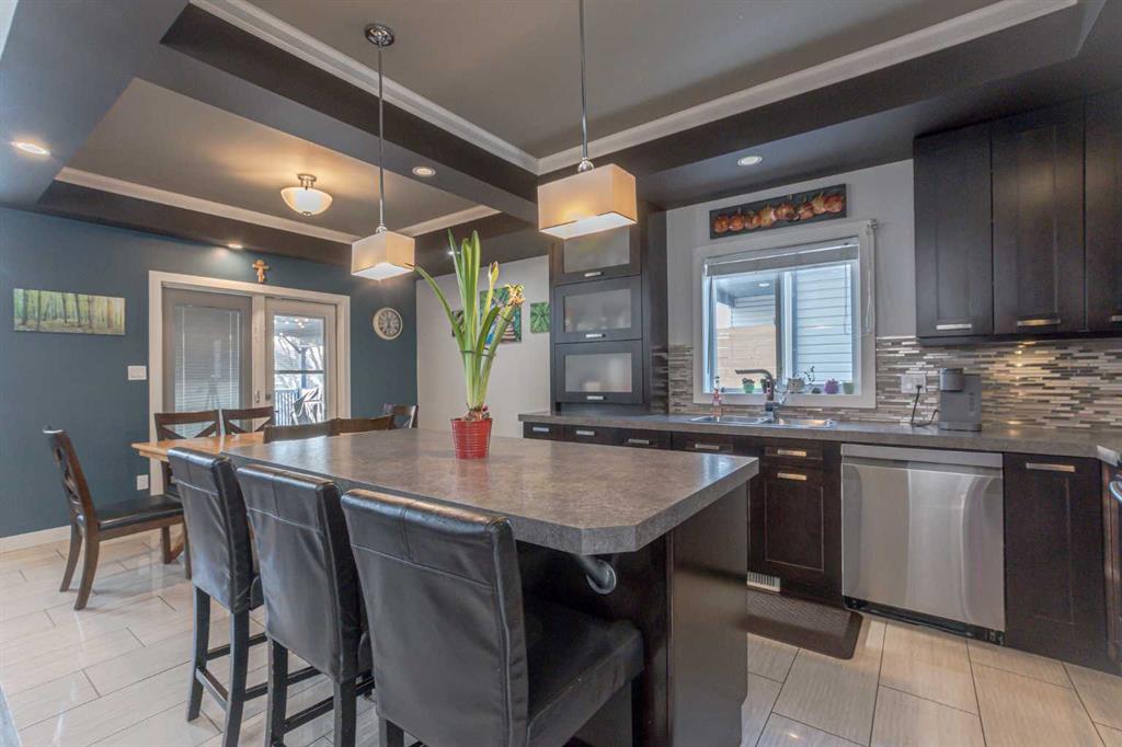 Welcome to this fully developed modified bi-level that impresses from the moment you step inside. Flooded with natural light and accented by coffered ceilings, this home offers an elegant touch while still feeling warm and inviting. The open-concept kitchen is both functional and stylish, featuring a walk-in pantry, an abundance of cabinetry, and seamless flow into the dining area with direct access to the backyard—perfect for everyday living and entertaining alike. The primary bedroom is a true retreat, offering generous space, a 5-piece ensuite complete with a jetted tub, double-sink vanity, walk-in shower, and a versatile nook area currently used as a home office. Additional bedrooms are all well-sized and thoughtfully laid out. Downstairs, the fully developed basement is ideal for entertaining, boasting a spacious family room, bar area, an additional bedroom, full bathroom, and ample storage space. Outside, enjoy a south-facing, fully fenced backyard, perfect for soaking up the sun. Located directly across from a children’s playground and close to schools, restaurants, shopping, medical offices, and the Eastlink Centre, this home offers both comfort and convenience in a sought-after location.