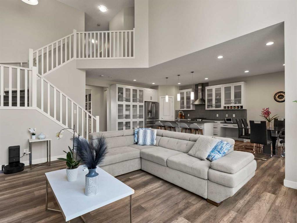 Lake lifestyle! Nestled in a quiet cul-de-sac just steps from the lake and Auburn Bay Schools, this stunning home sits on a massive, professionally landscaped pie lot. The open-concept main floor makes a grand statement with 18-ft floor-to-ceiling windows, custom built-ins, and a cozy gas fireplace. The chef-inspired kitchen boasts quartz countertops, white cabinetry, a gas range, and a walk-in pantry. Upstairs, the primary retreat features a 5-piece ensuite with a deep soaker tub and glass shower. Two additional bedrooms share a full bath, plus a huge vaulted bonus room with surround sound. The fully finished basement (9ft ceilings) is an entertainer’s dream, featuring a private theatre room with a projector, screen, and surround sound, plus a 4th bedroom and full bath. The backyard oasis is unrivaled: a custom pergola, stamped concrete, built-in fire pit. Enjoy year-round lake access in Calgary’s premier community. Open House Cancelled!