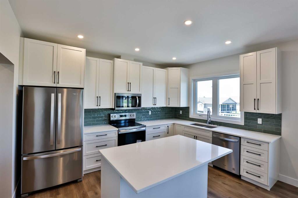 The windows at the back of the home offer breathtaking views of the Rocky Mountains and the 12th green of the Vulcan Golf Course. Step out onto your expansive deck that spans the width of the home, perfect for entertaining guests. This outdoor space is finished with vinyl decking and aluminum railing, for low maintenance lifestyle.