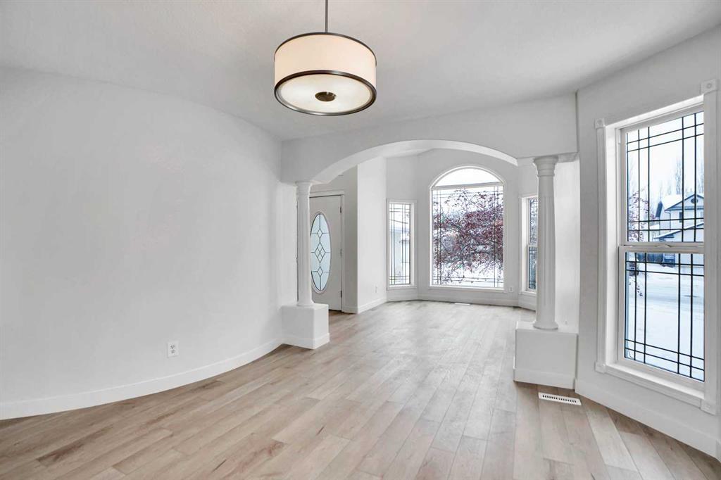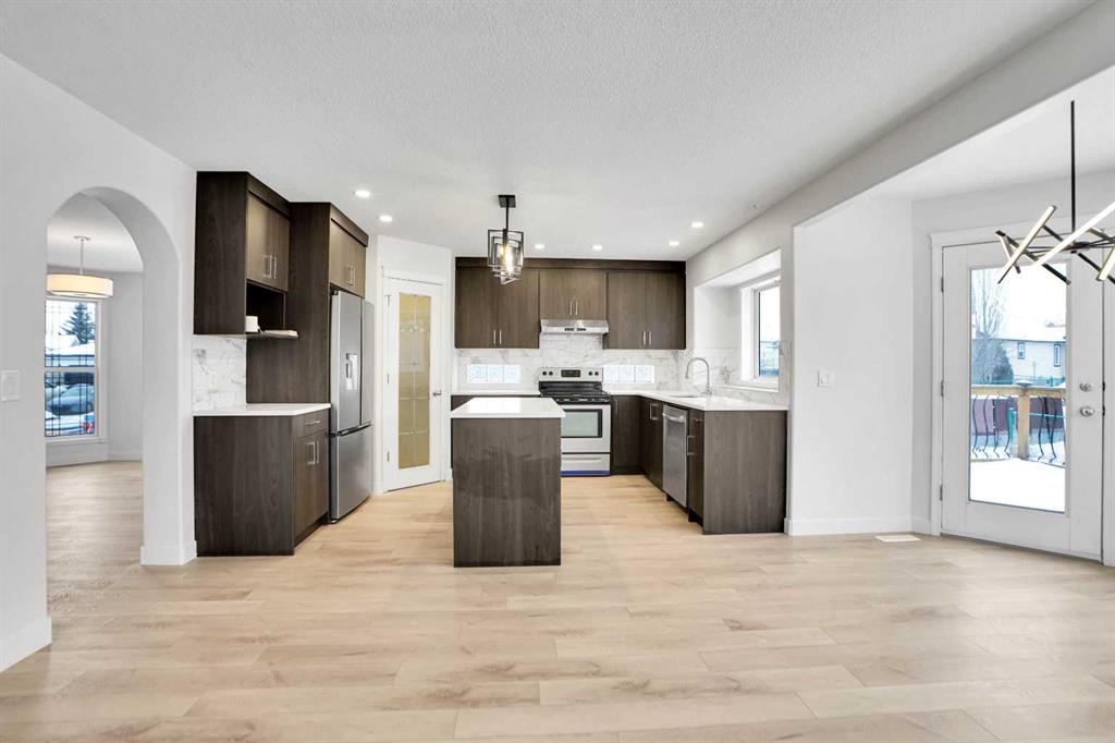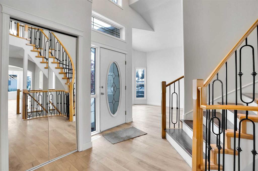 *Life really is better by the lake — Welcome to The Cove in Chestermere!* This beautifully renovated 2-storey home sits on a large corner lot backing onto pathways and green space, just a short walk to Chestermere Lake, The Cove Beach, parks, playgrounds, and off-leash areas. Set on a generous corner lot, this property gives your family the rare balance of privacy, convenience, and year-round recreation. Walk the kids to the beach, hit the pickleball courts, let the dog run at the off-leash park, or enjoy sunset strolls along the water… all just minutes from your front door. Inside, the house greets you with that WOW moment — soaring 17’ ceilings, the sweeping curved staircase, and oversized windows pouring natural light across brand-new flooring. It’s a true “wow” entrance that sets the tone for the rest of the home. The main floor features a spacious formal living/dining area, a bright kitchen with centre island and pantry, a cozy family room with 3-sided fireplace, and a private main-floor office with French doors. Ceiling to floor Windows in the Family Room provide ample light during the day and gives you an unobstructed view of the backyard. Step outside onto your own private deck for summer BBQs or just relaxation after a long work-week. This house has it all. Upstairs offers 3 bedrooms including a generous primary suite with 5-pc ensuite and walk-in closet. The open-to-below hallway adds light and airiness throughout. The second and third bedrooms are towards the front of the house, with spacious closets, new carpets and light fixtures. The 4 pc bathroom down the hallway is also a master piece and Brand NEW with it\'s cabinetry, lighting, faucets, counter tops and shower area. The unspoiled basement is ready for your future development with 3 windows and lots of potential. Enjoy a large backyard with deck, concrete patio, and plenty of room for kids, pets, and entertaining. Location is everything. In The Cove, you get walking trails, parks, green space, and proximity to Chestermere Lake for boating, paddle-boarding, and fishing - plus easy access to shopping, schools, and highways. If you’re looking for a family home that blends style, comfort, and a community outside of the big city - this is it! Move-In ready and Quick possession available! Come book your showing today and fall in love with it.